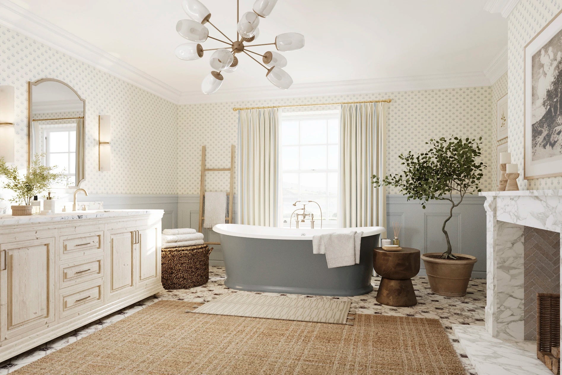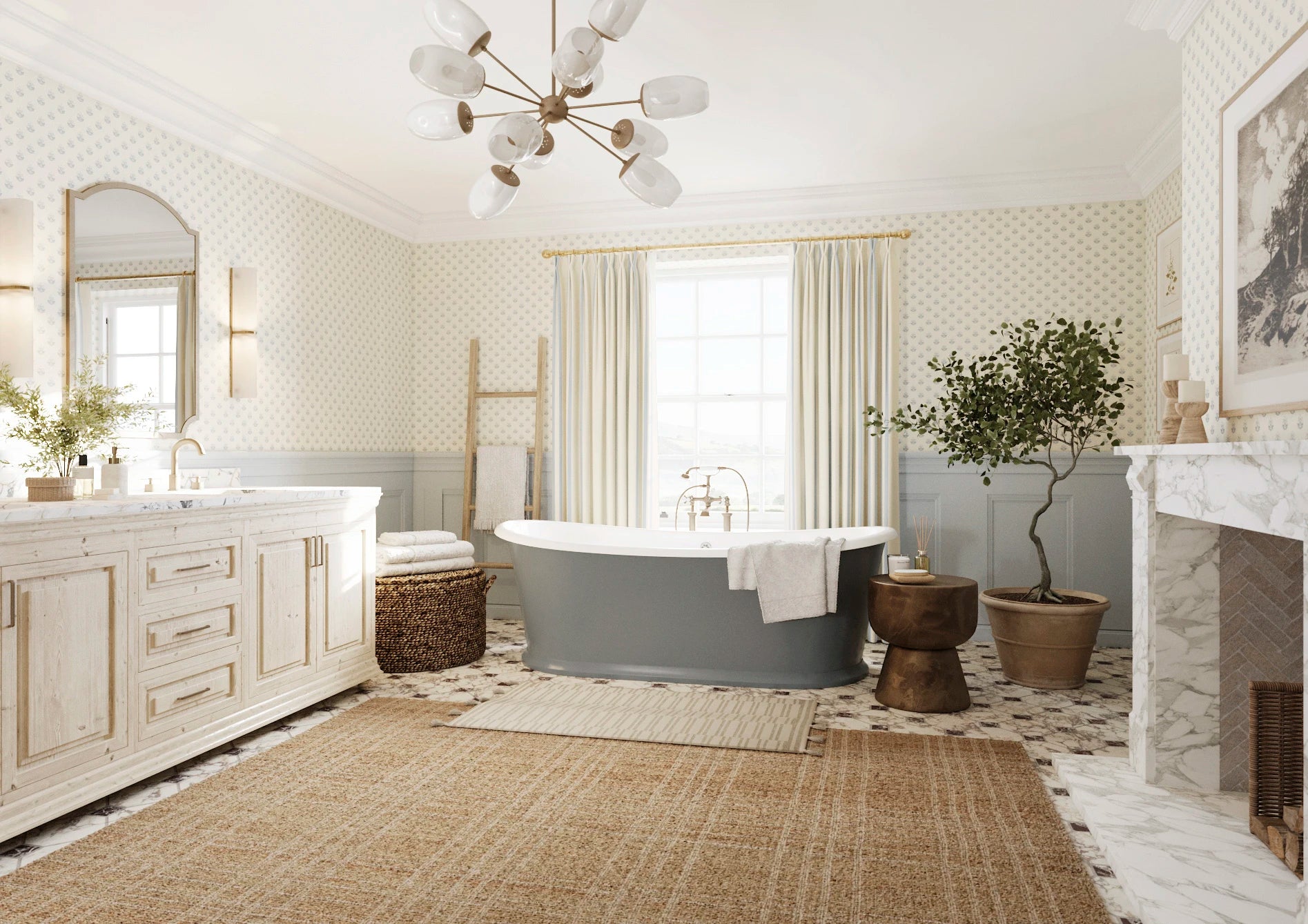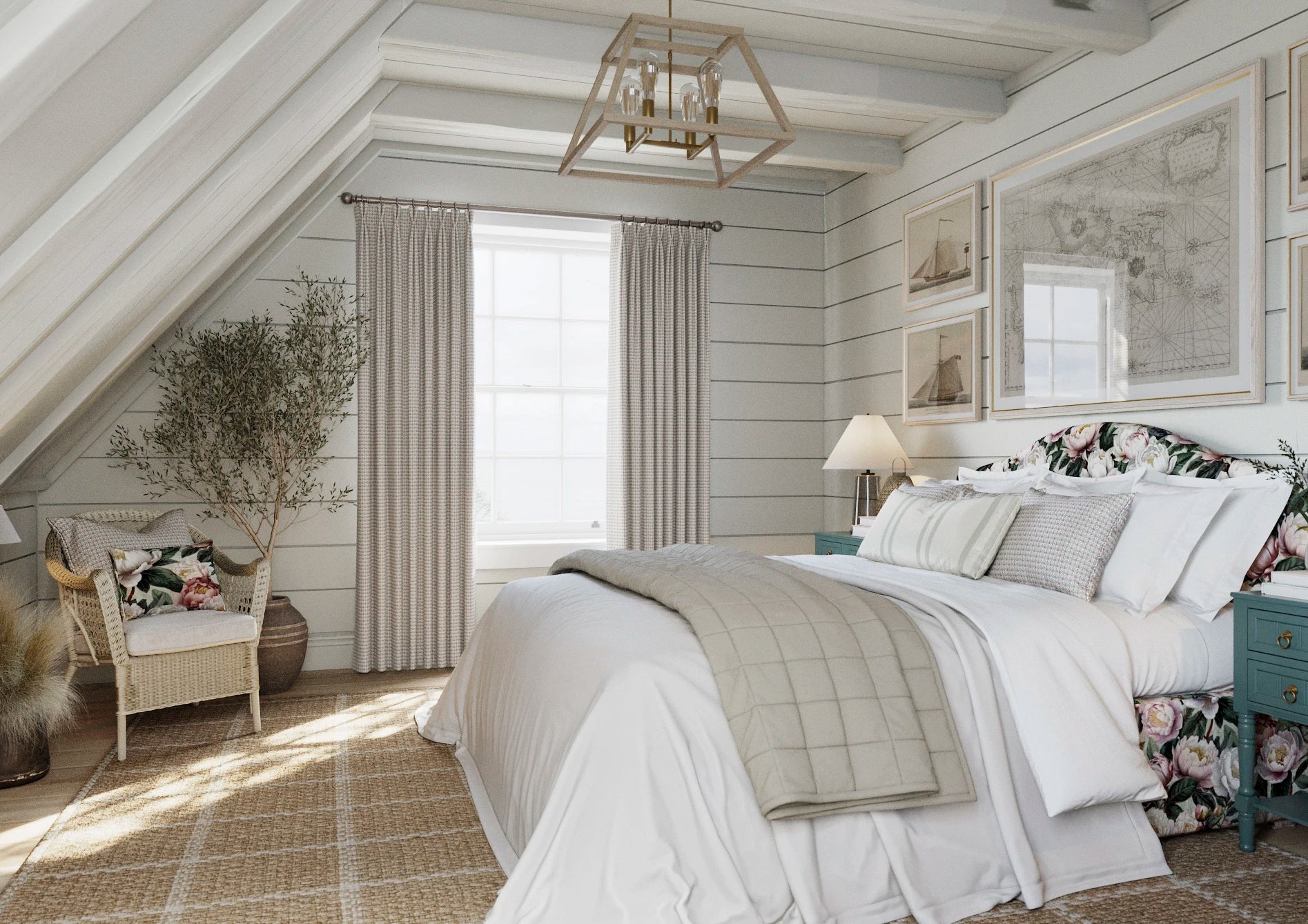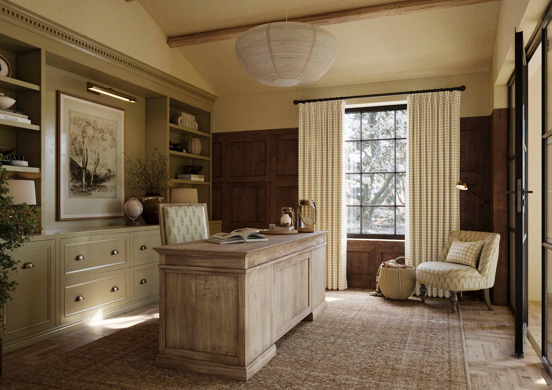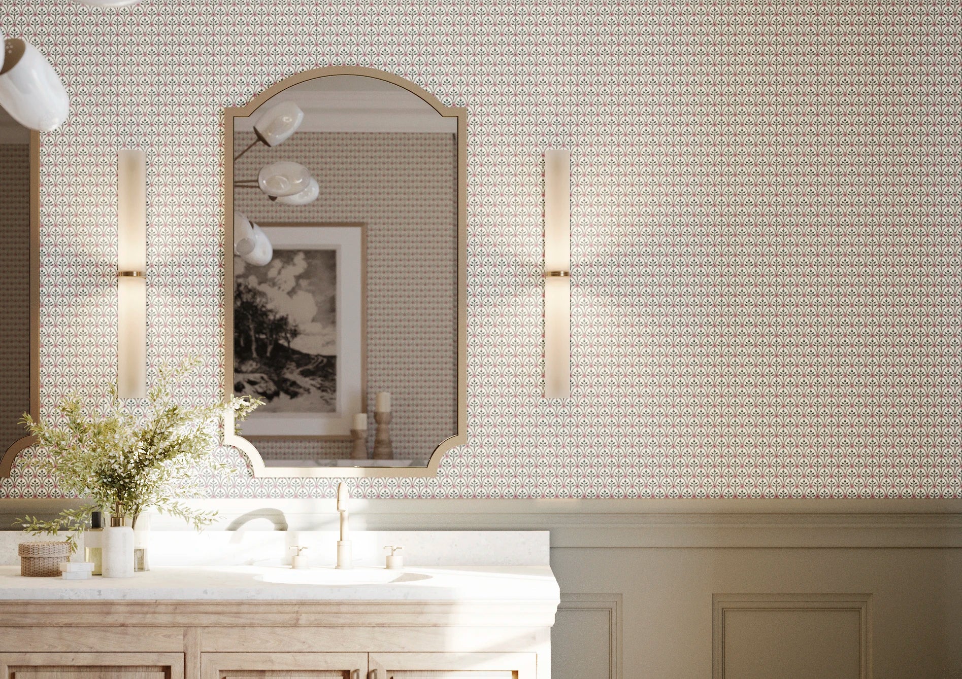 Tudors is a bold, structured motif inspired by medieval carvings, stained glass tracery, and decorative church stonework. Stylised florals rise in rhythmic, gothic arches, forming a strong vertical repeat that feels both ornamental and architectural. With a Stowe floral, set against a Romsey ground, the design balances soft botanical detail with graphic precision and historic grandeur.