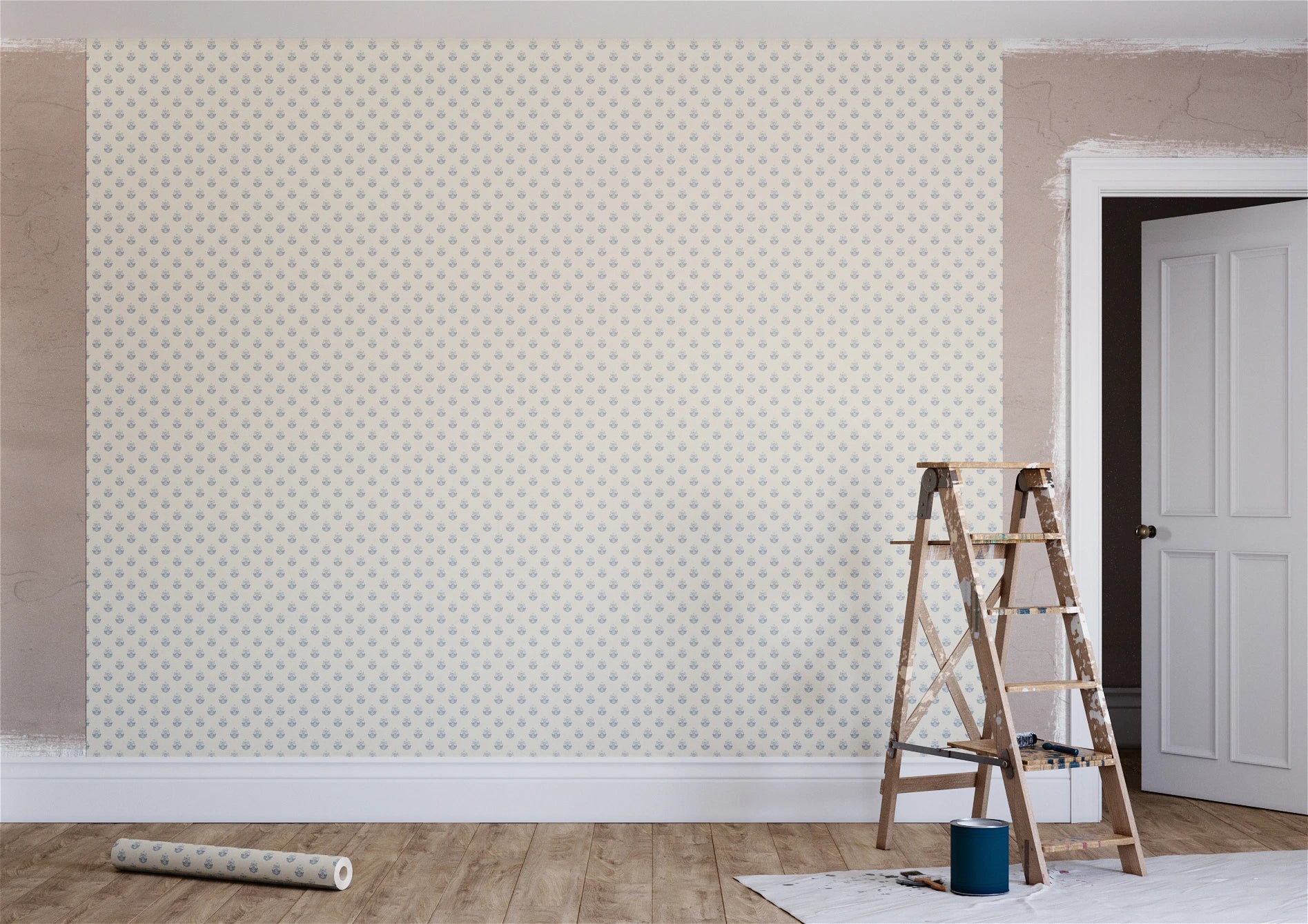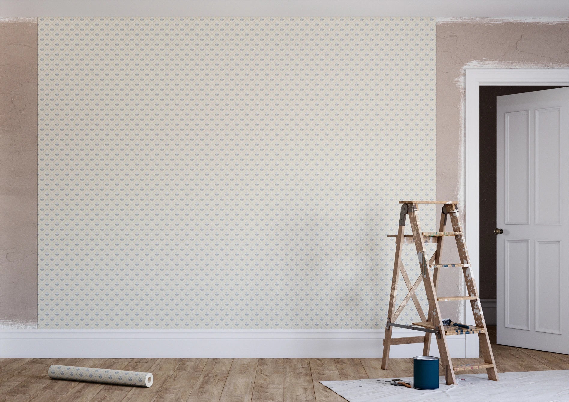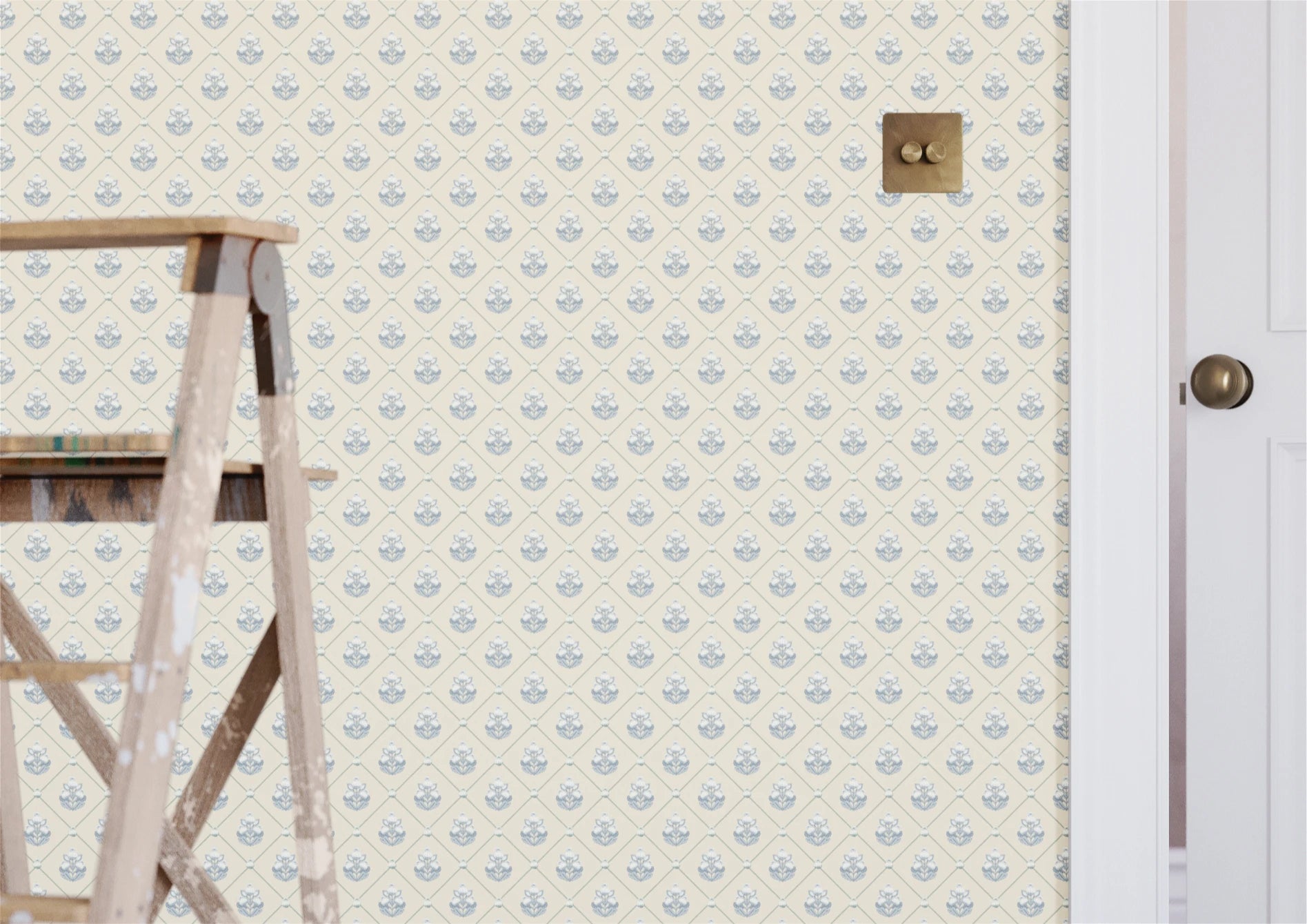 This wallpaper design has a vertical pattern repeat of 22.86 cm and comes in our standard wide rolls, which have a width of 76.2 cm.