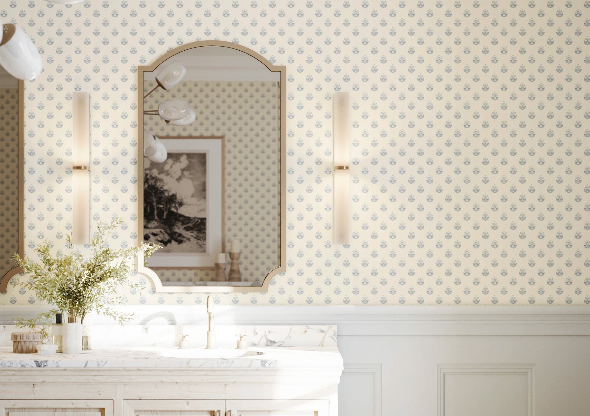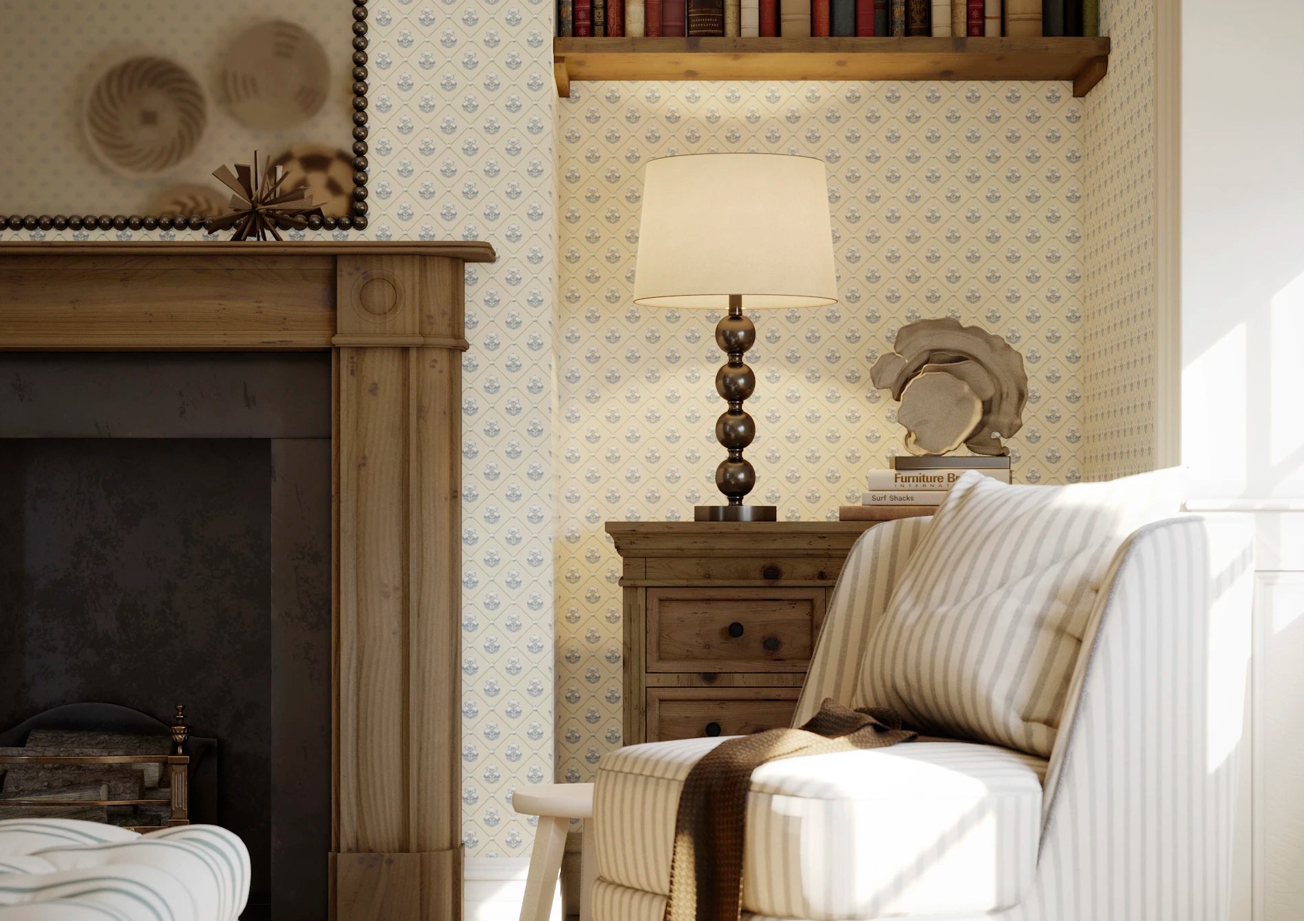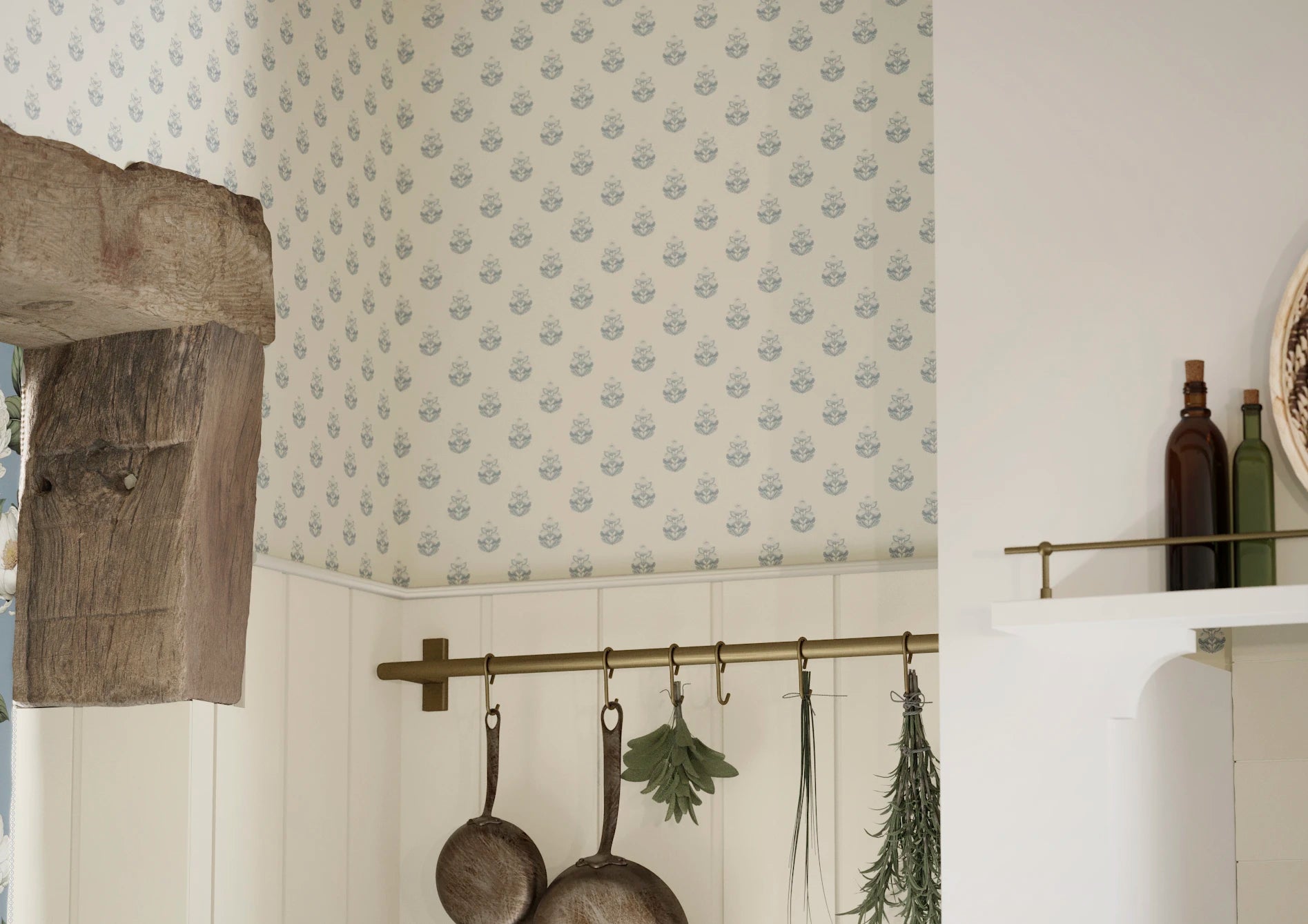 This wallpaper design has a vertical pattern repeat of 22.86 cm and comes in our standard wide rolls, which have a width of 76.2 cm.