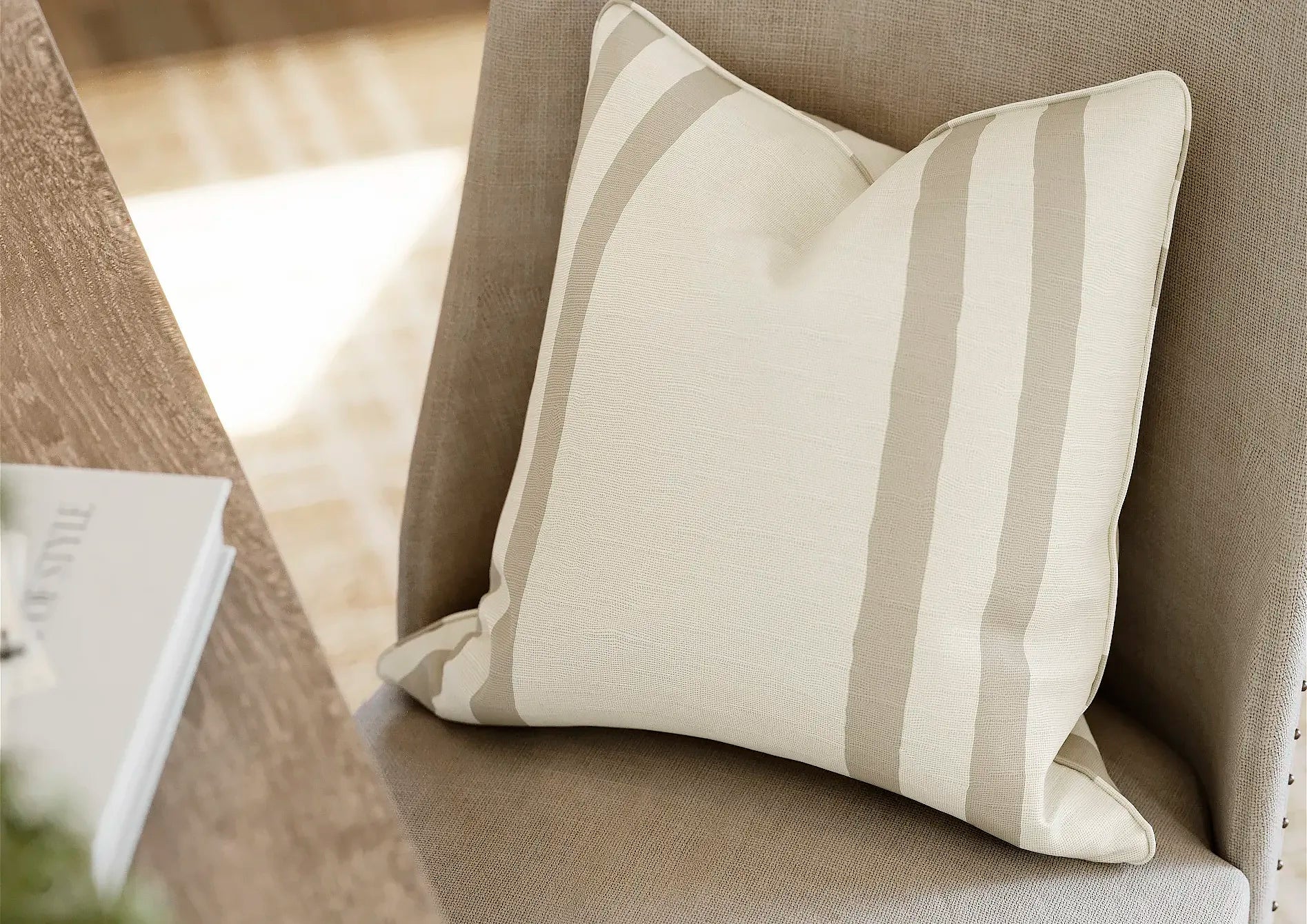 Softly spoken yet full of presence, Winnies Stripe in Cashmere offers a timeless elegance. The gentle, warm neutral makes it endlessly versatile - ideal for layering with texture or pairing with prints for a look that feels both composed and comfortable.