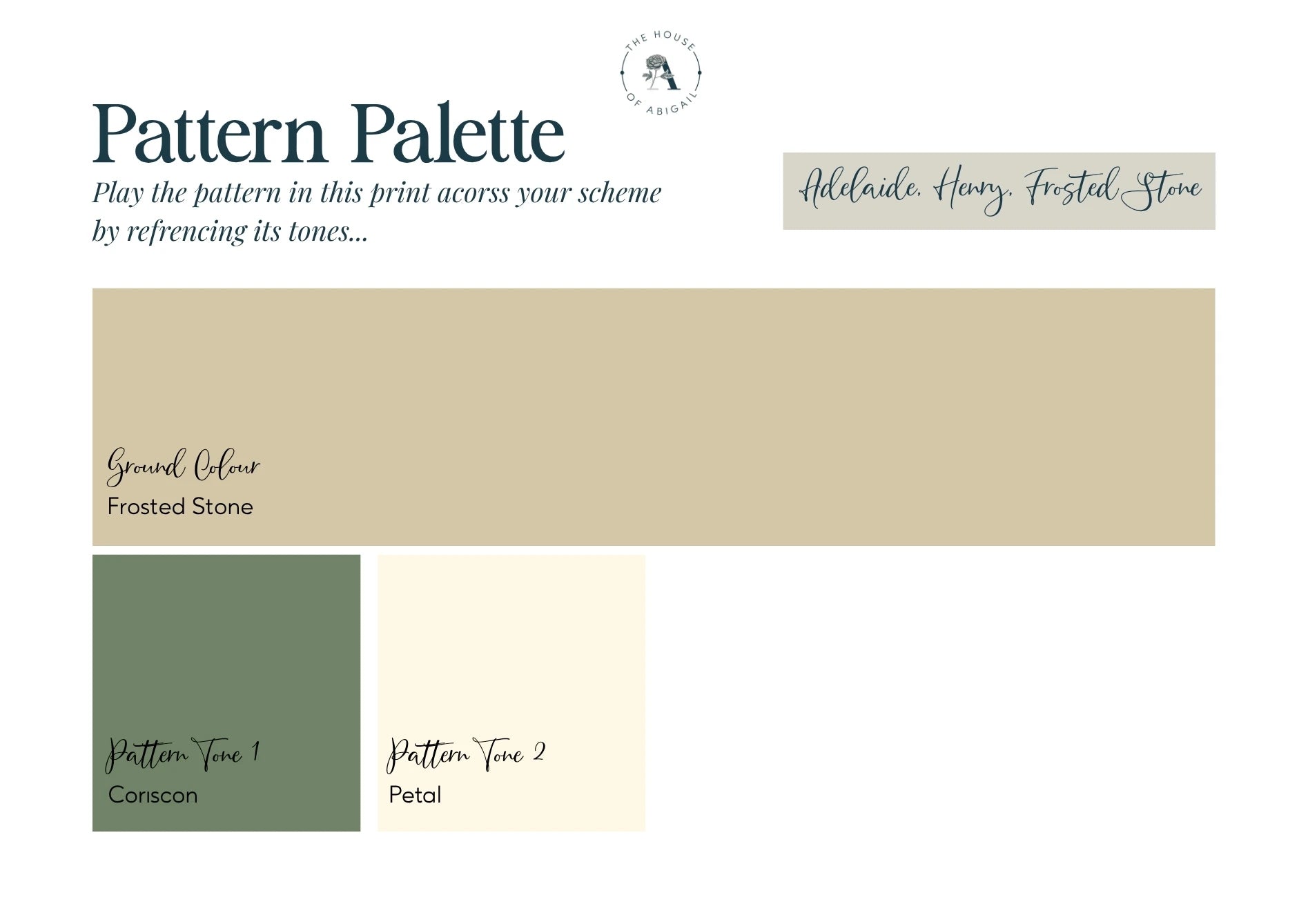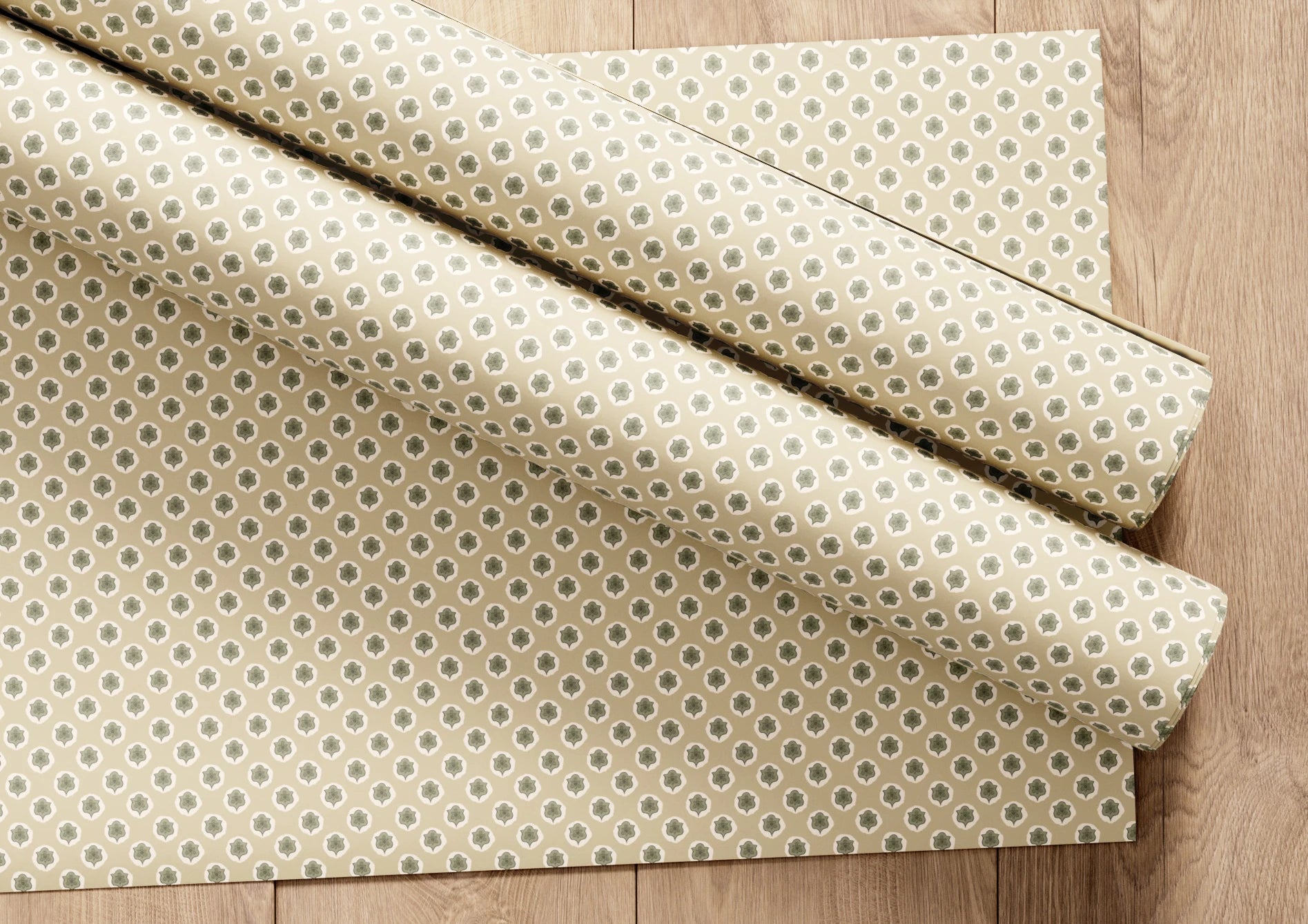 In the Frosted Stone colourway, muted sage greens are set against a warm stone ground, creating a palette that is calming, natural, and effortlessly versatile."