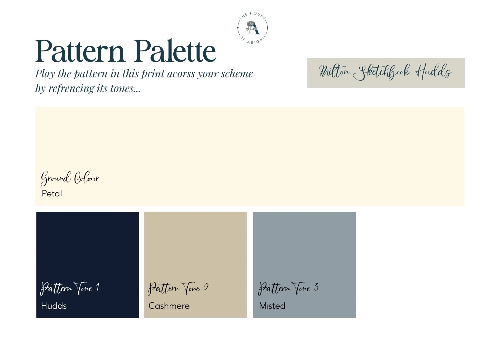 Milton Sketchbook in Hudds offers a striking balance of artistry and design — a heritage-inspired print that feels equally at home in classic and contemporary interiors."