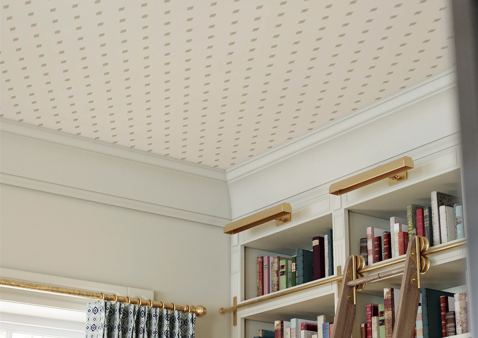"Trinity Spot belongs to the Trinity Collection, which draws on ecclesiastical motifs and traditional decorative detailing. Its repeating arrangement of stylised quatrefoils creates a balanced pattern that feels ordered yet quietly expressive.