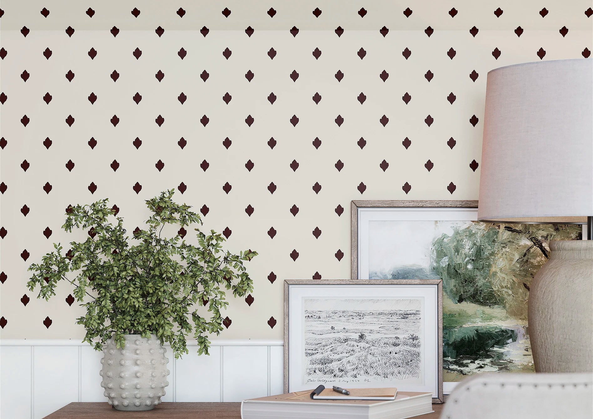 Trinity Spot in Russet combines heritage influence with modern sophistication — ideal for dining rooms, hallways, or living spaces where warmth and pattern are desired."