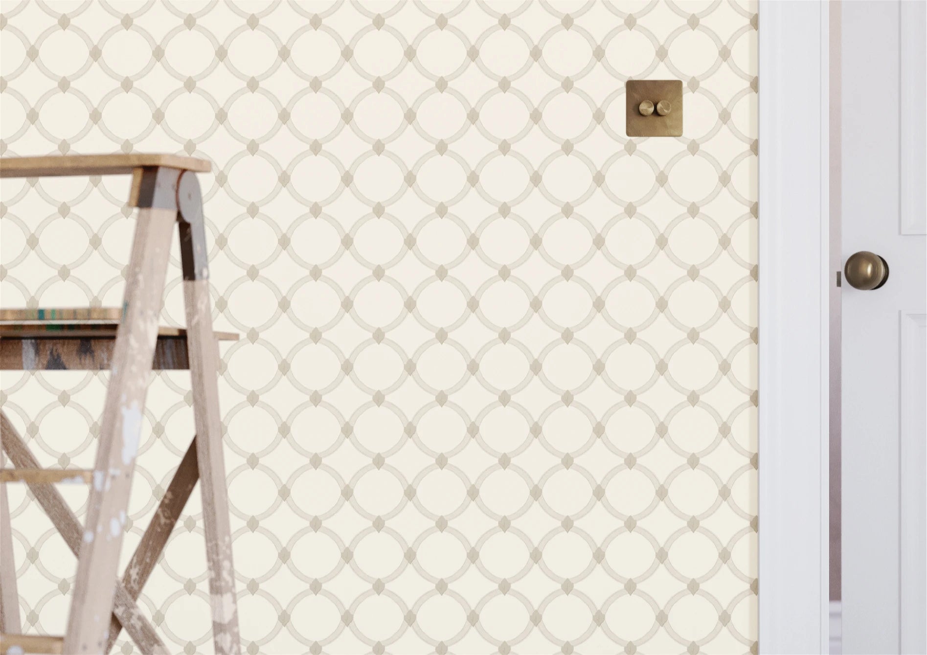 Trinity Trellis in Cashmere embodies heritage artistry with modern restraint — ideal for hallways, dining rooms, or living areas where a sense of calm order and timeless detail is desired."