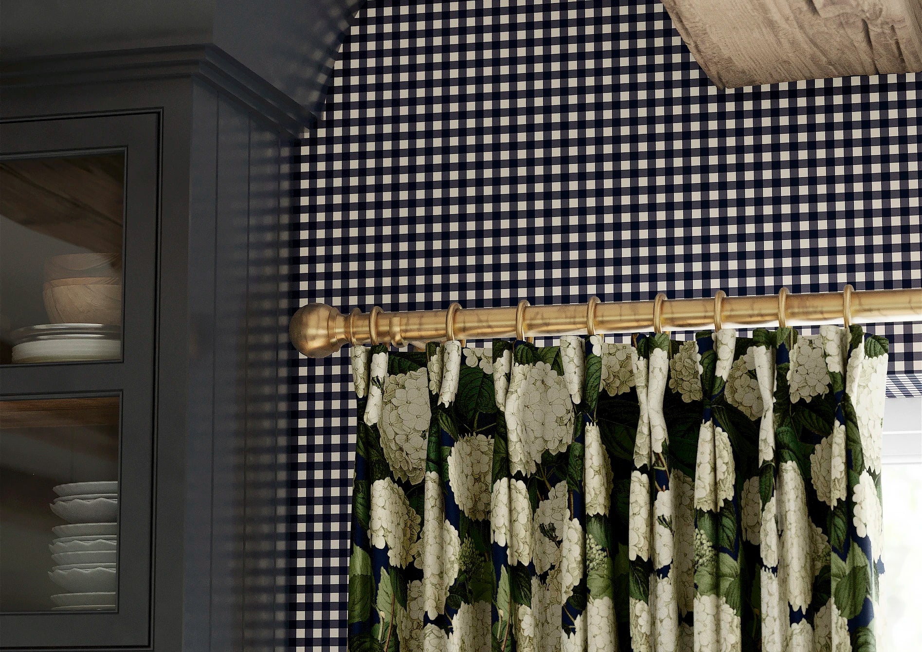 "Upton reimagines the classic gingham check with bold, timeless character. In the Hudds colourway, deep navy squares contrast against a soft cream ground, creating a strong, confident palette that feels both heritage-inspired and strikingly modern.