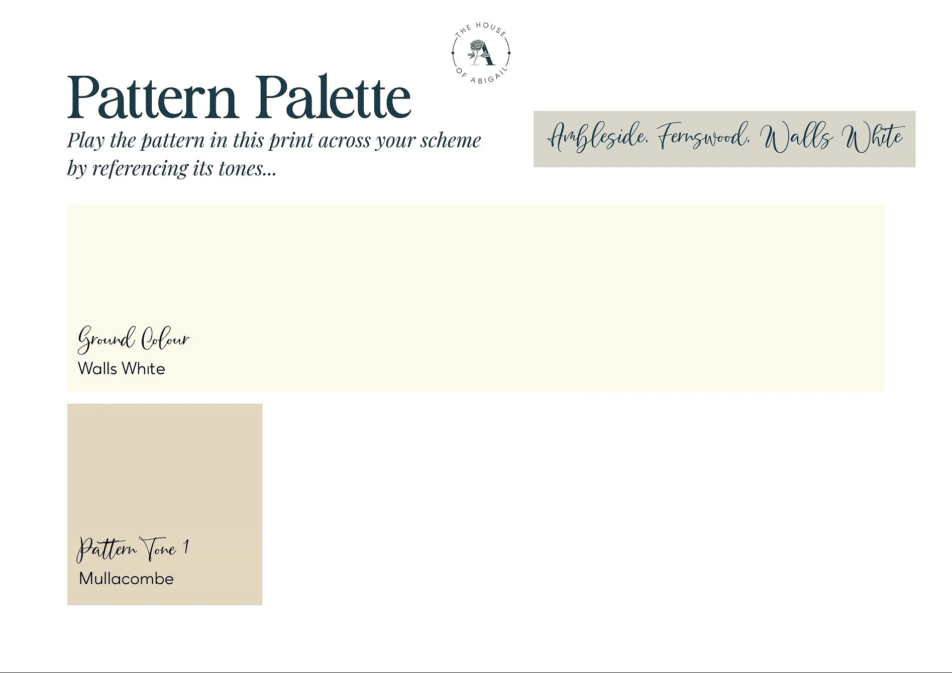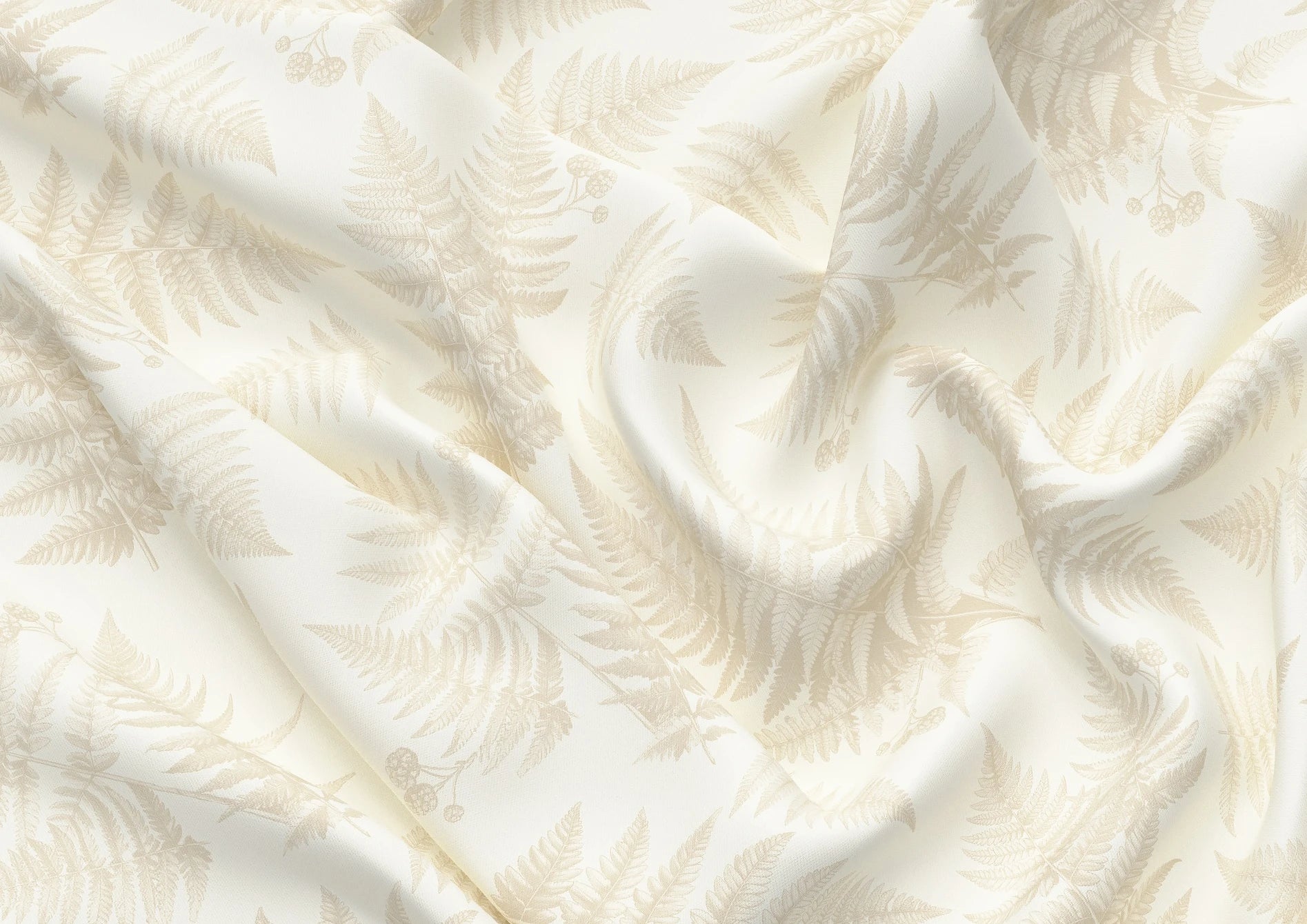 Fernwood from the Ambleside collection becomes especially gentle in the Walls White colourway. The layered fern forms soften into the background, creating a calm, textural presence that feels light and unassuming in a space. Subtle tonal variation adds interest without contrast, allowing the design to sit comfortably alongside other patterns or to stand alone in quieter schemes. Part of the Joyful Sense, this palette brings an easy freshness and openness, offering a thoughtful base for pattern play across collections. An ideal choice for curtains, blinds, or spaces where light, calm and simplicity are key.