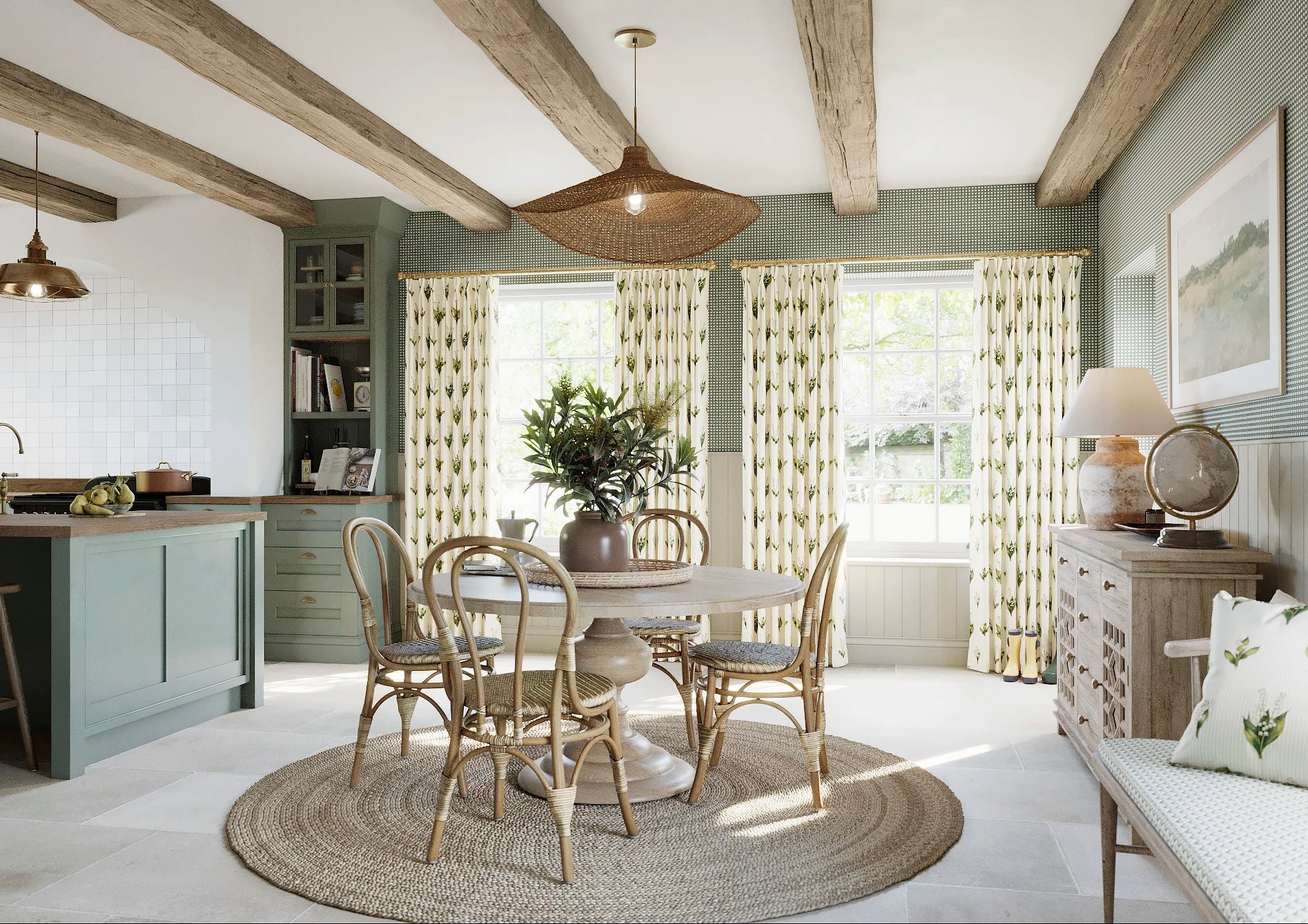 Janes from the Ambleside collection is a delicate, uplifting design, where gentle floral sprigs are given space to breathe. The repeated motifs feel calm and considered, bringing a sense of order and quiet charm to a room. In the Chartreuse colourway, soft green tones are paired with pale ivory and warm golden notes, creating a palette that feels fresh, light, and full of warmth. Part of the Joyful Sense, this colourway offers an easy way to introduce pattern and colour without heaviness, working beautifully alongside other designs across collections. A graceful choice for curtains, blinds, or spaces where lightness and calm are key.