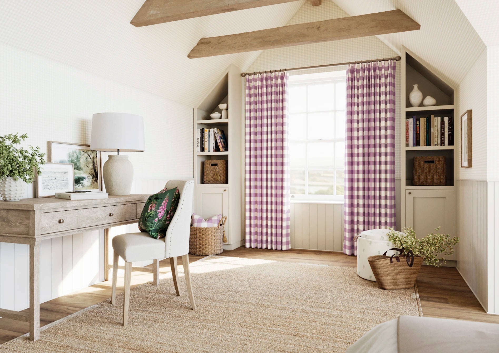 Gingham from the Trellis Prints collection offers a gentle, grounding presence, drawing on a familiar pattern softened by warm, neutral tones. The check brings structure without formality, creating a sense of calm and balance that feels easy to live with. In the Mullacombe colourway, layers of soft parchment, warm oat, and pale chalk create a palette that is light, settled, and quietly comforting. Part of the Joyful Sense, this gingham works effortlessly across collections, providing a thoughtful foundation for layered interiors.