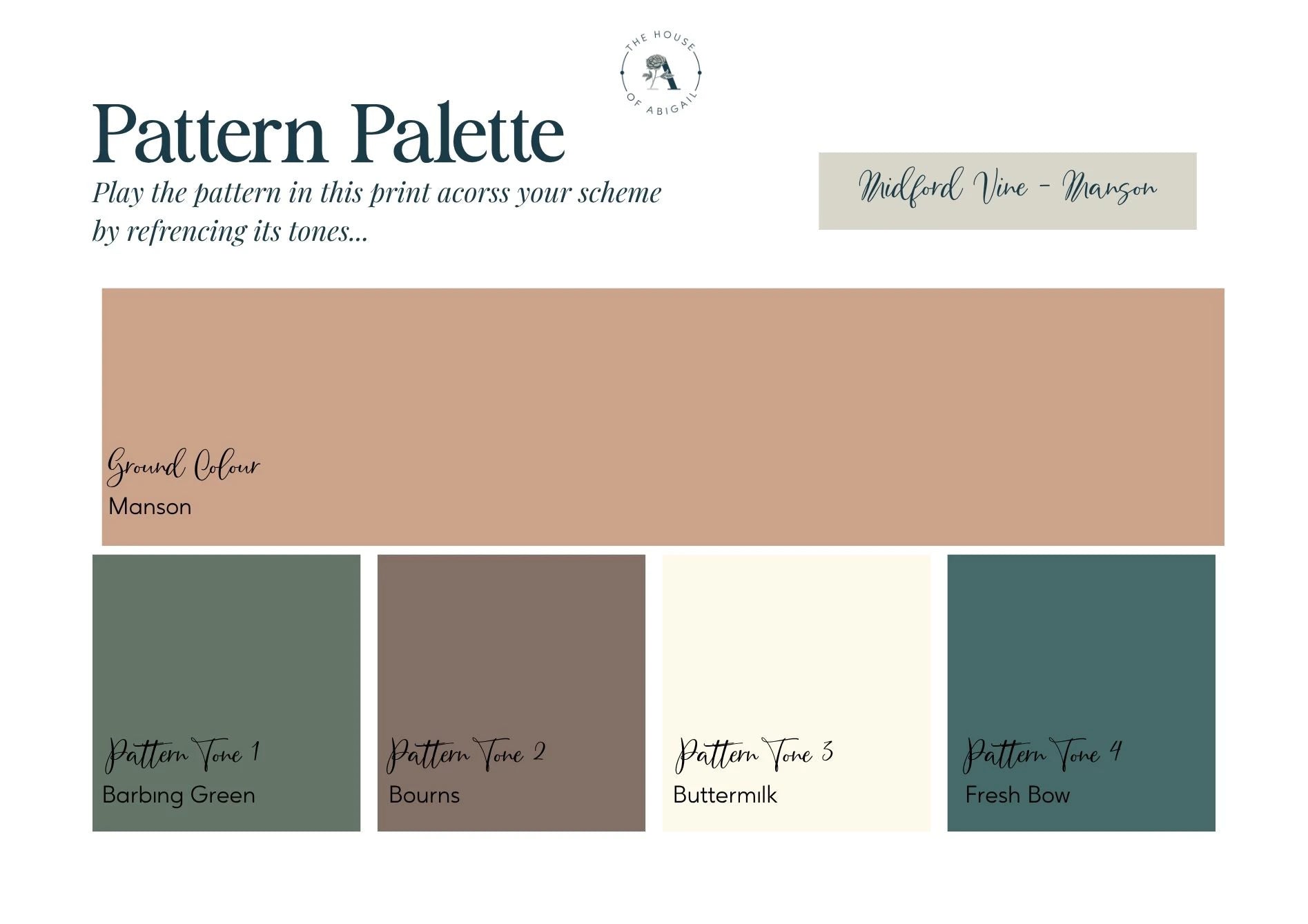 Midford Vine is a celebration of natural beauty and craftsmanship. Hand-drawn by Abigail, this elegant design captures the delicate movement of climbing vines and botanical forms, brought to life in the soft, timeless blue of the Manson colourway. Part of the Midford Collection, it weaves together classic English garden inspiration with a fresh, contemporary touch - creating a print that feels both familiar and wonderfully new.