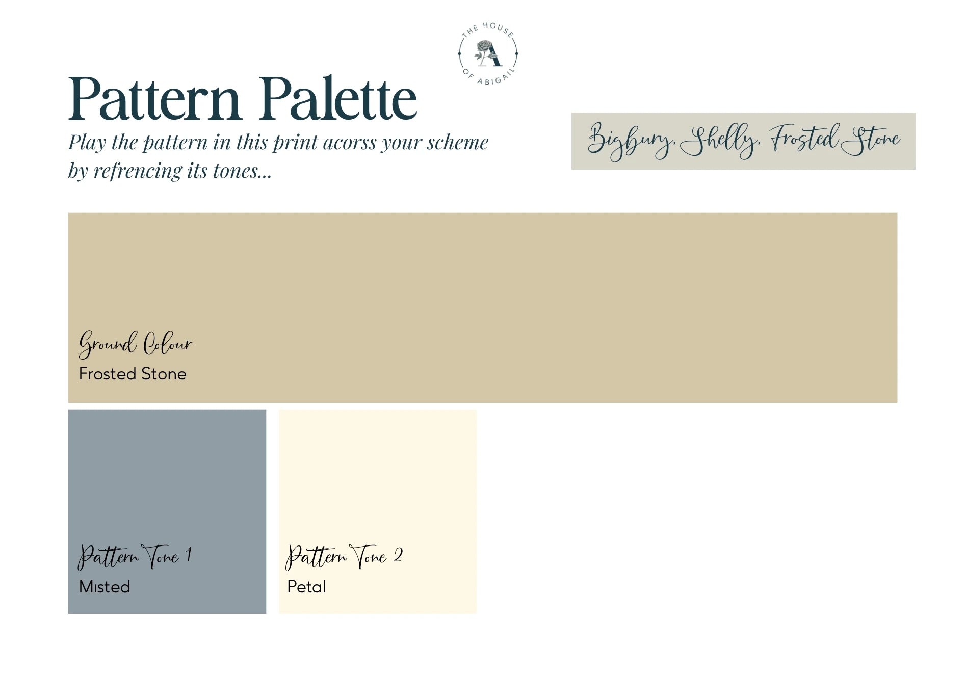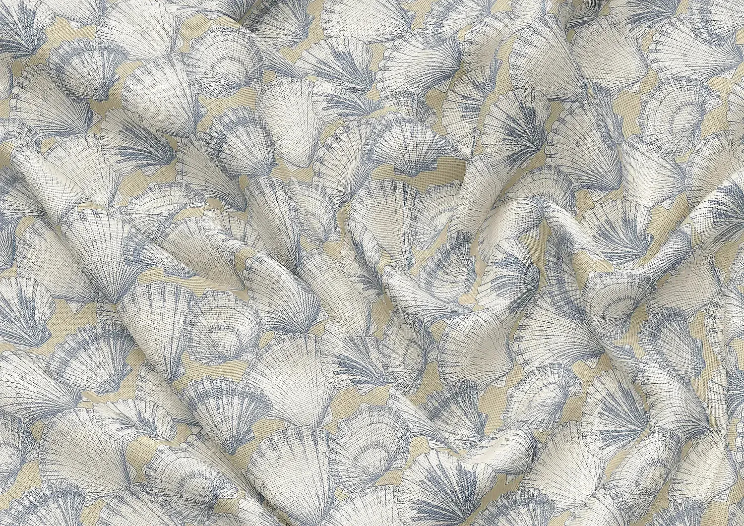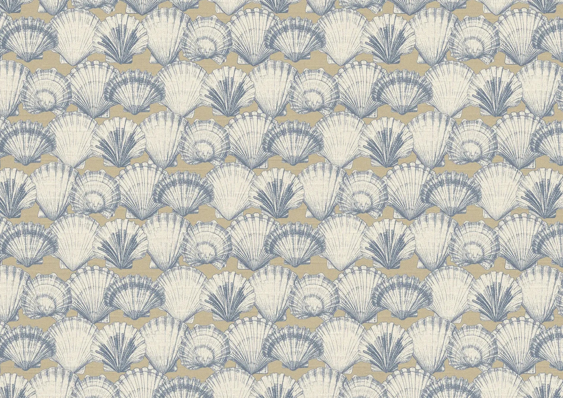 Shelly is a delicate, all-over repeat of hand-drawn scallop shells - a quiet homage to seaside collecting and coastal stillness. Originally sketched by Abigail from a mixture of British finds and historical shell studies, the design captures the symmetry and variety found in nature’s most sculptural souvenirs. In the Frosted Stone colourway, soft blue shell forms sit crisply against a warm chalk-stone ground, creating a refined coastal palette that feels both classic and contemporary. The neat horizontal layout gives Shelly a tailored rhythm, ideal for upholstery, curtains or wallpaper in elegant, light-filled spaces. Part of the Bigbury Collection, Shelly brings a gentle touch of maritime memory into the home - understated, storied and full of charm.