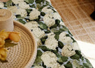 Annabelle is a richly detailed hydrangea print inspired by Abigail’s childhood memories of her aunt and uncle’s garden - where late summer blooms brushed against windows and spilled over gravel paths. Originally sketched by hand, the design captures the generous scale and velvety softness of the Annabelle hydrangea, with each cluster rendered in fine line and shaded tone. The Cornflower colourway pairs creamy white blooms and verdant green leaves with a delicate periwinkle blue background - a fresh yet grounded palette that brings clarity and calm to the design. Perfect for full drapery, statement walls or upholstered accents, Annabelle balances nostalgia with cultivated poise. Part of the Calledon Collection, this print brings a sense of story, scale and softness to modern British homes.