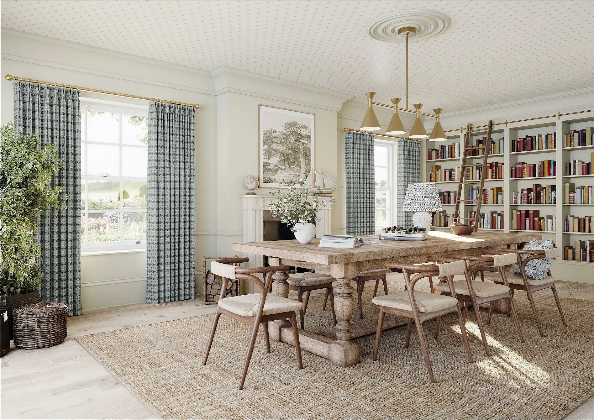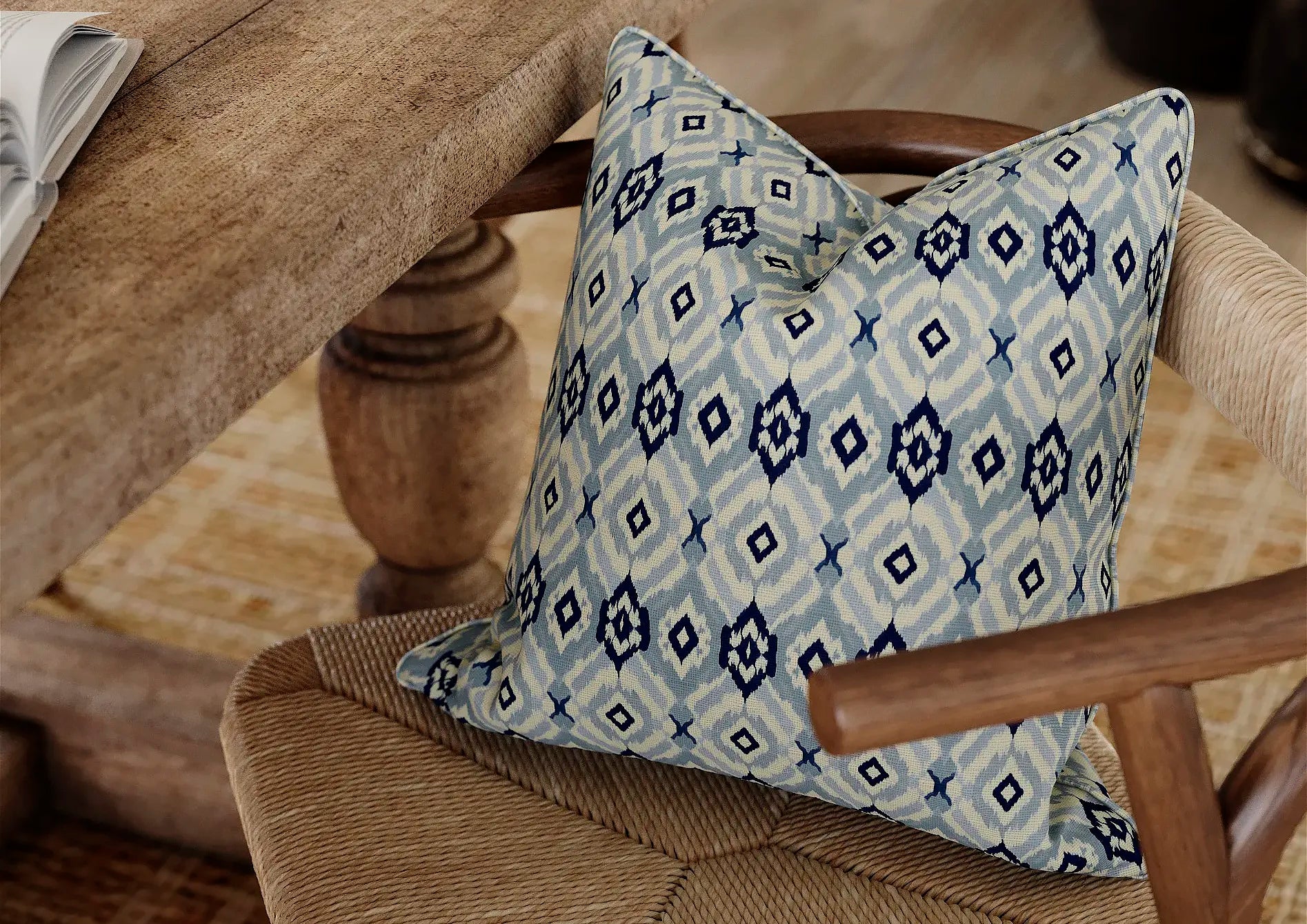 Marks is a softly geometric design composed of hand-drawn diamond motifs that repeat in a quiet, rhythmic formation. Inspired by traditional weaving patterns and softened by subtle irregularity, the design balances structure with texture. In the Hudds colourway, deep inky blue gives the geometric repeat a crisp clarity, offset by a warm ivory ground. The result is tailored but relaxed - perfect for adding a layer of quiet pattern to both classic and contemporary interiors.