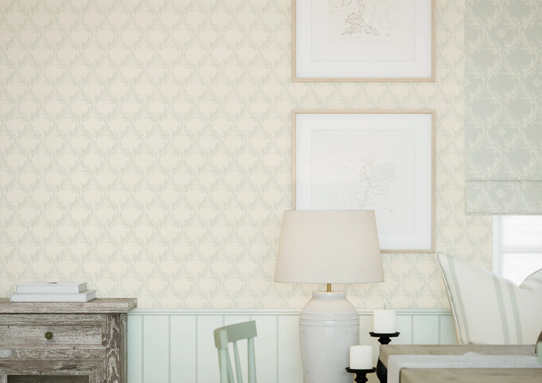 Trellis Prints - Garden Vine - Bud Green