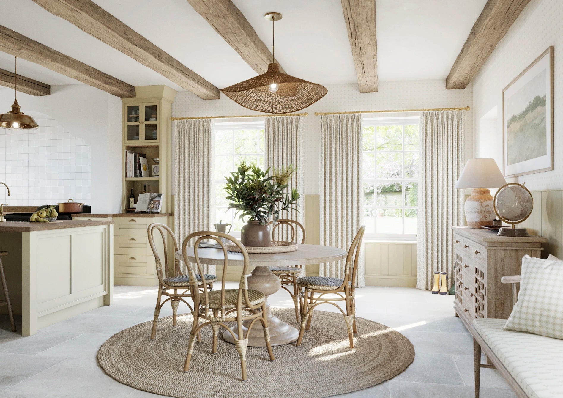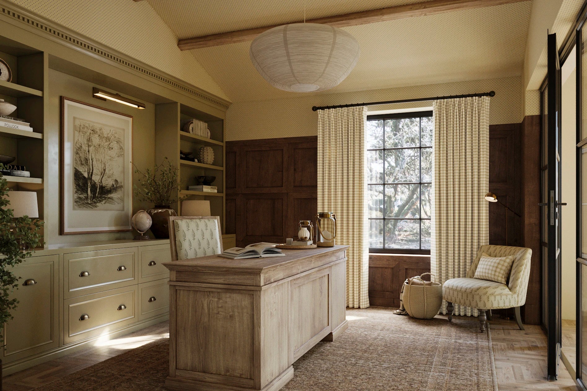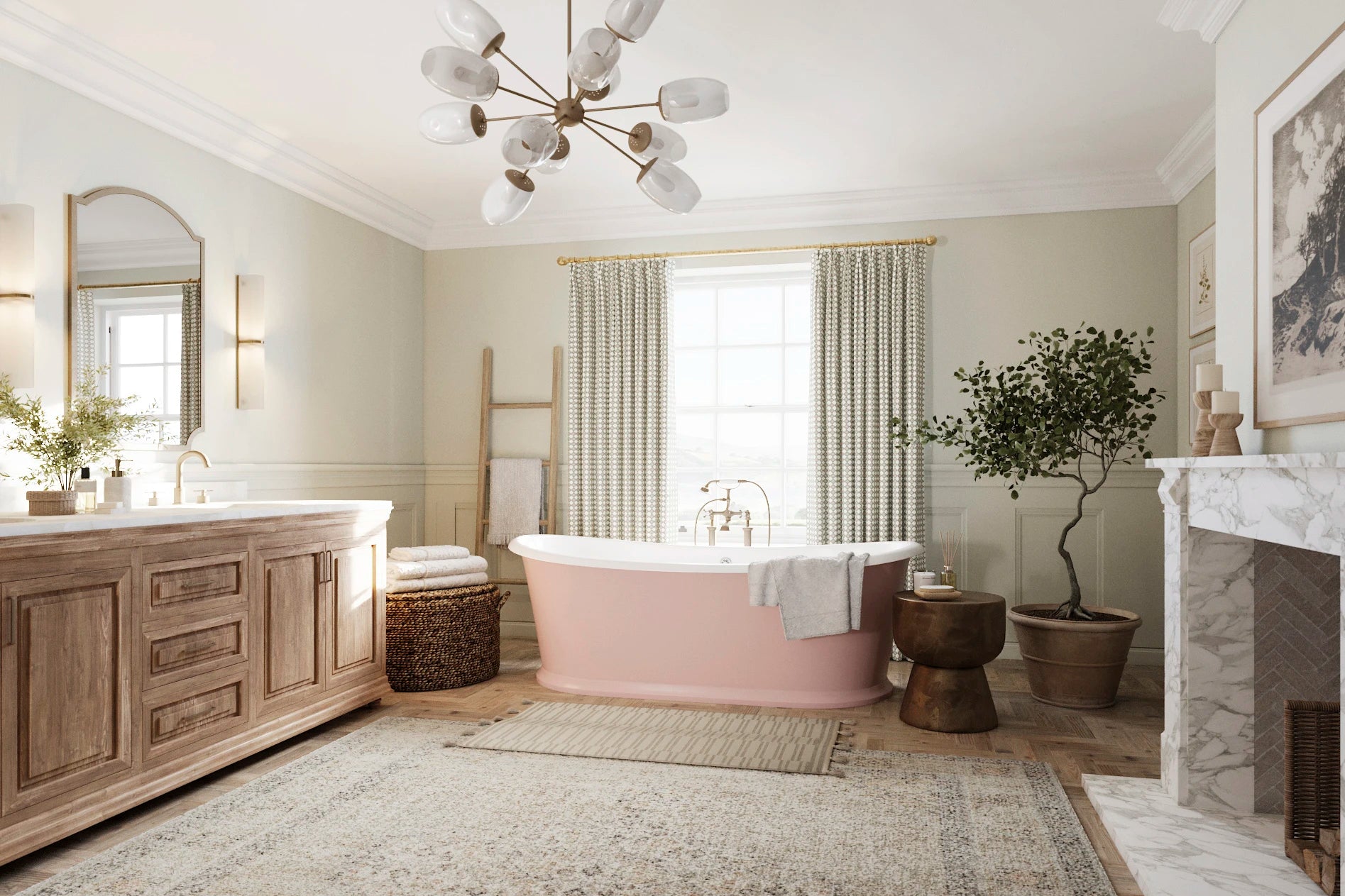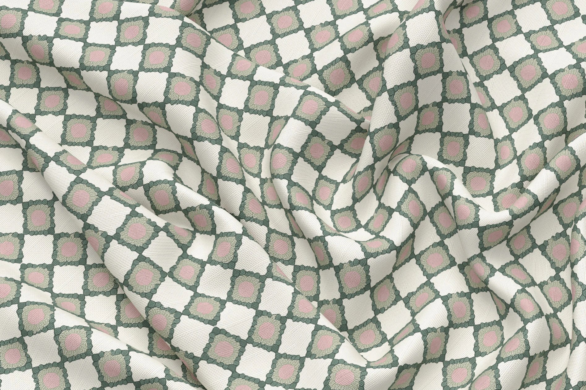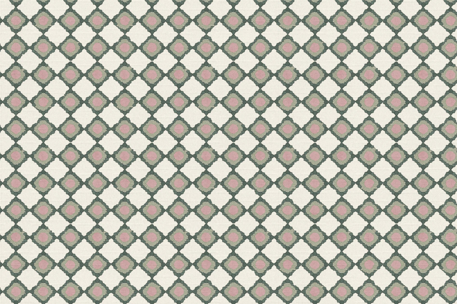 Bloom Spray offers a lighter, more ornamental take on traditional Arts & Crafts florals. Featuring stylised tulips in gentle Rosies Pink and accents of Barbing Green botanical sprays framed within arched motifs, this design brings together symmetry and softness with fine detail and decorative rhythm. The repeat is rich yet refined - ideal for adding a quieter touch of pattern to bold interior schemes.