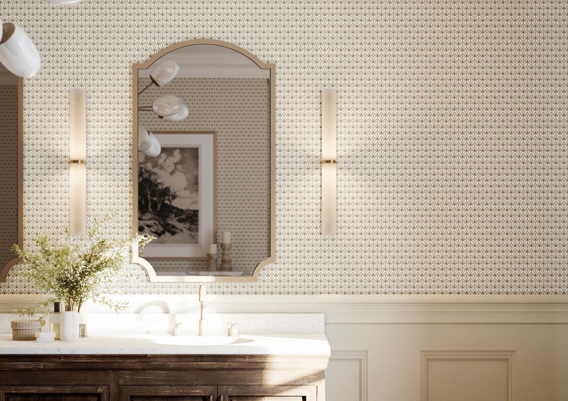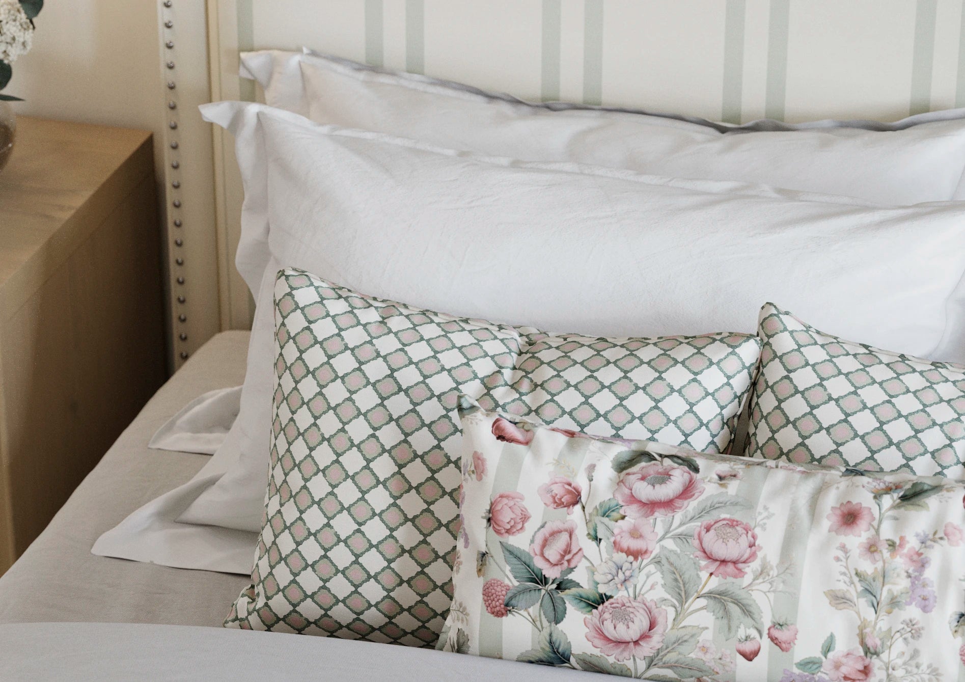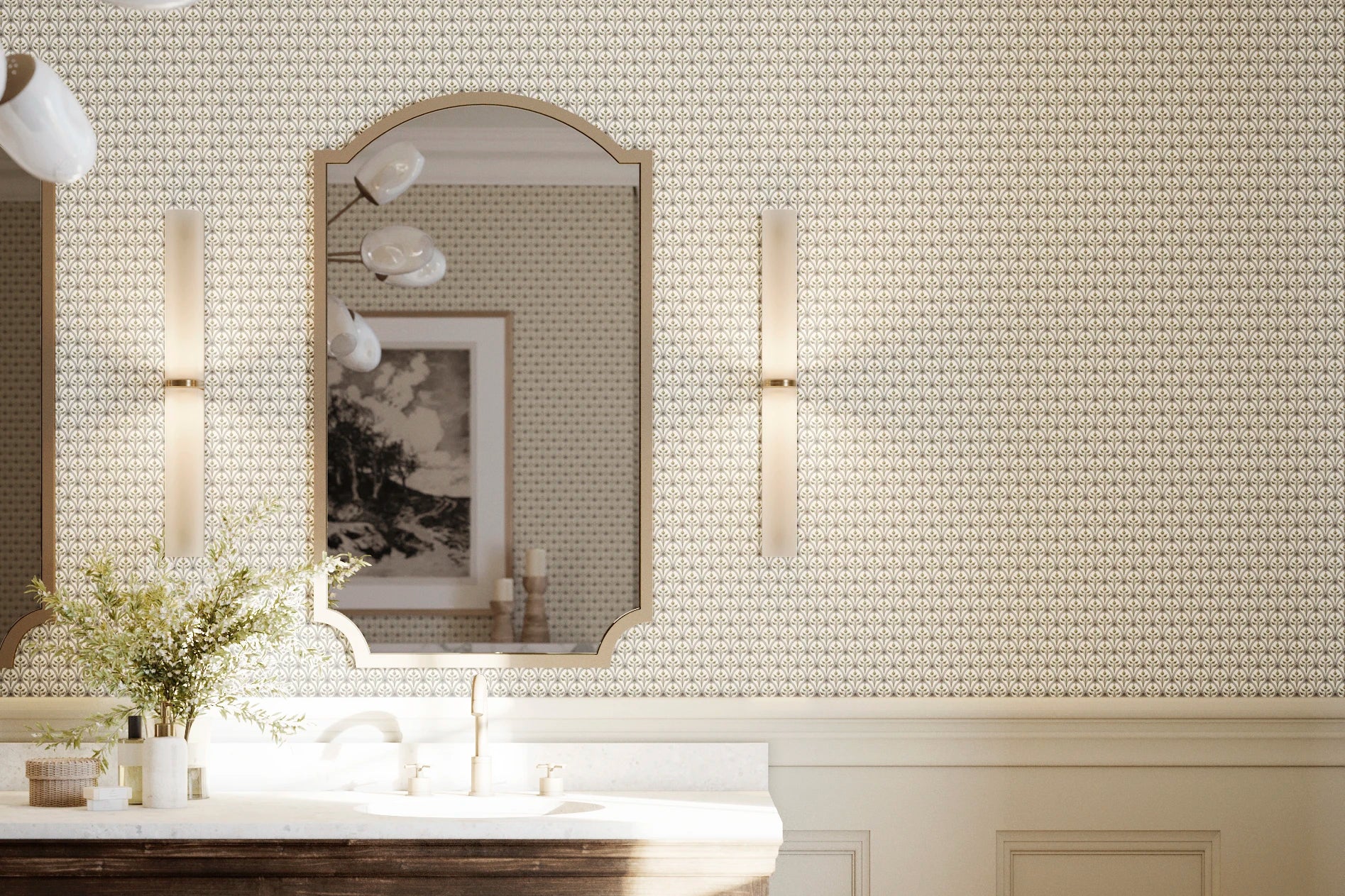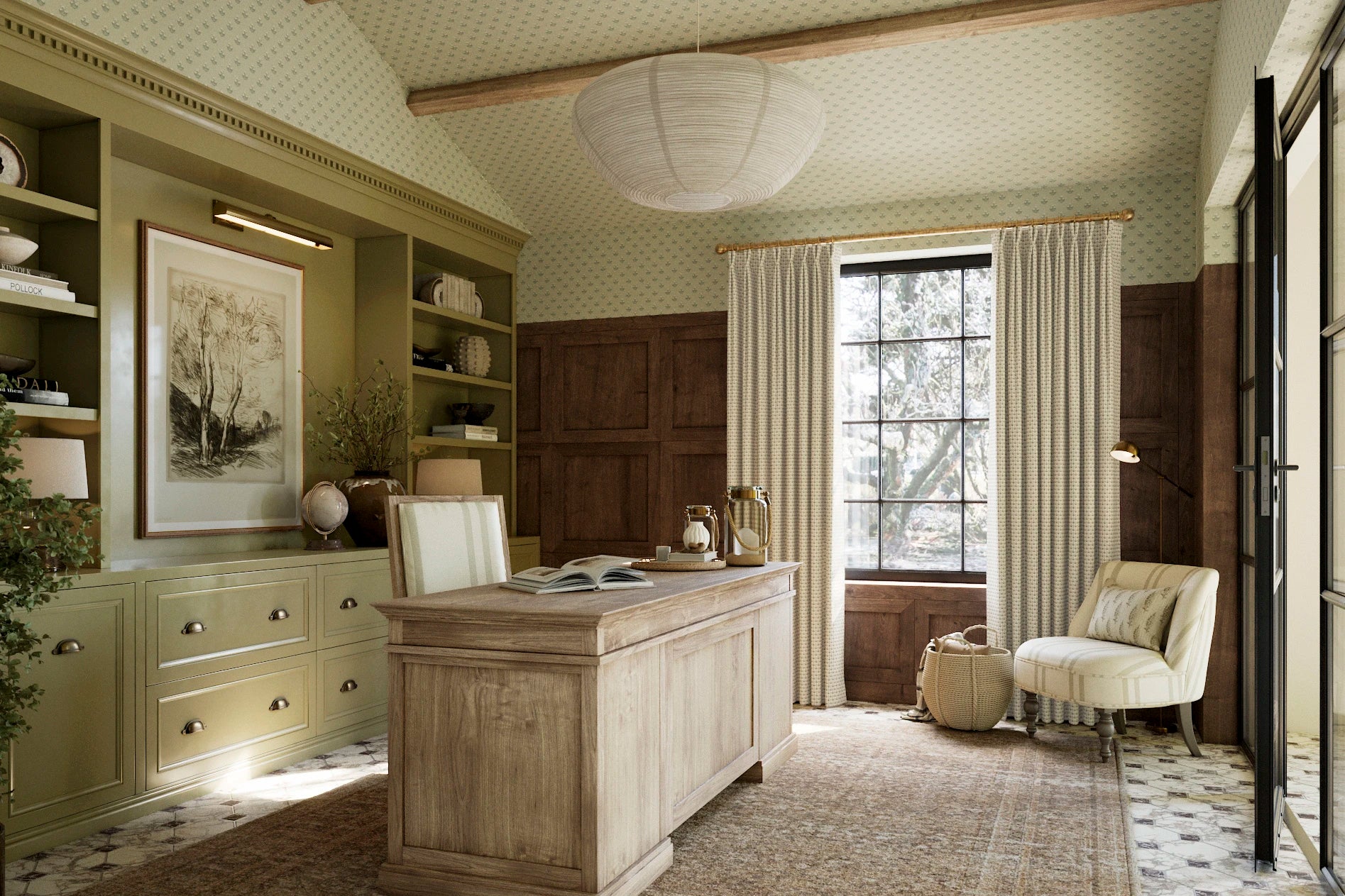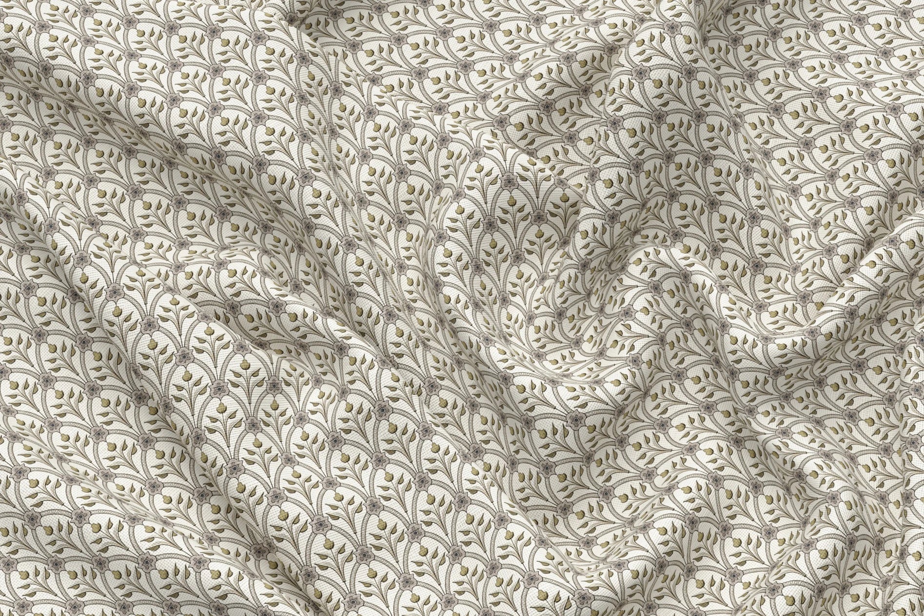 Tudors is a bold, structured motif inspired by medieval carvings, stained glass tracery, and decorative church stonework. Stylised florals rise in rhythmic, gothic arches, forming a strong vertical repeat that feels both ornamental and architectural. With a Rosies Pink floral, set against a Buttermilk ground, the design balances soft botanical detail with graphic precision and historic grandeur.
