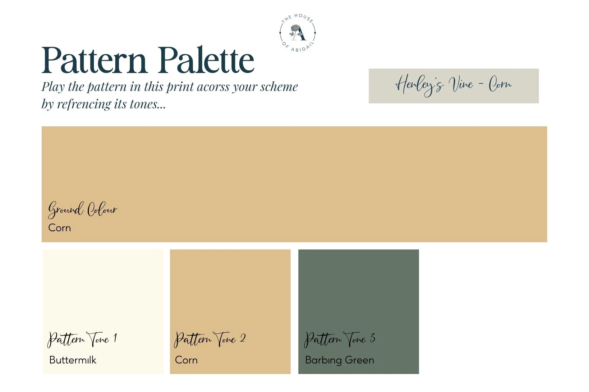 Inspired by traditional hand-drawn botanical studies, Henley’s Vine features finely etched peonies and trailing leaves in an elegant vertical repeat. Abigail’s delicate linework captures the natural beauty and movement of the garden with a timeless sense of artistry. Presented in the soft, creamy Corn tone, this design brings a gentle warmth and sophisticated rhythm to interiors. Part of the Henley Collection, Henley’s Vine celebrates the enduring beauty of handcrafted design, thoughtfully created by The House of Abigail.