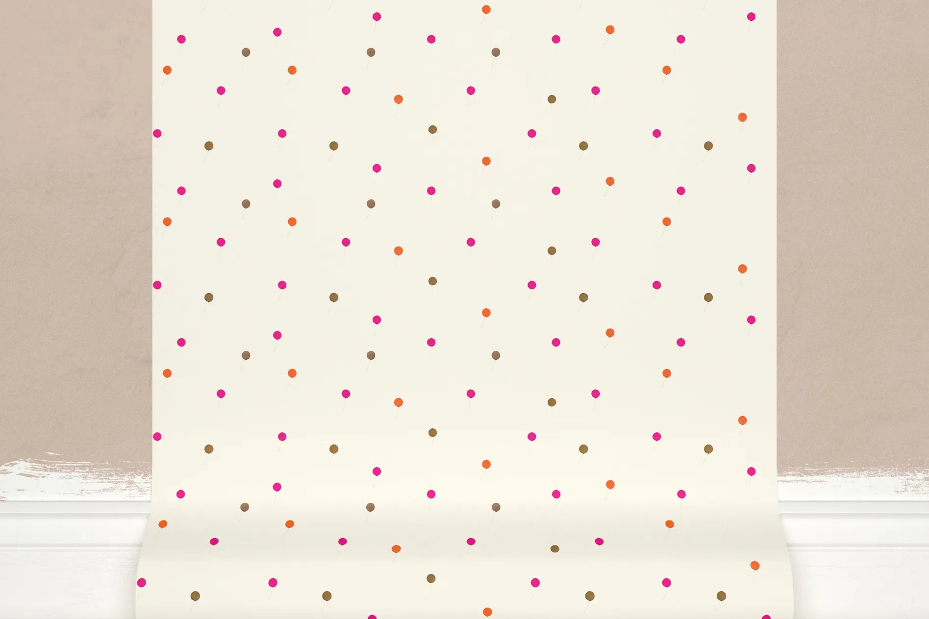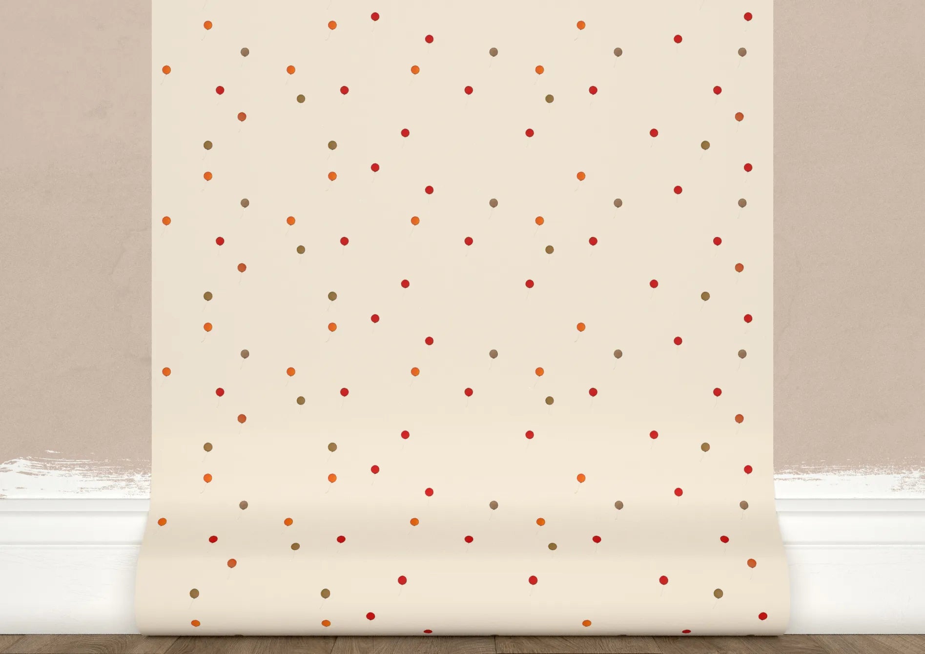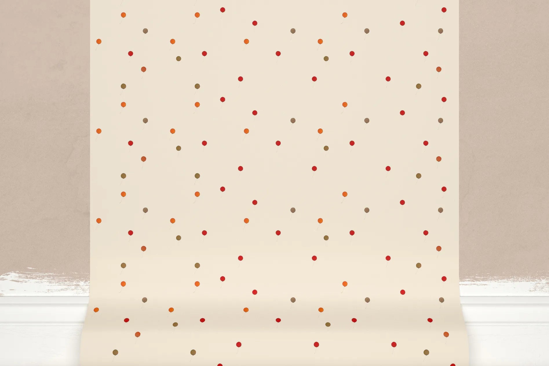 This charming paper features spiced-toned balloons which, at a distance, appear to be a simple polka dot, but up close, gentle hand-drawn strings reveal the floating nature of this design. This simple but charming paper will add whimsical character to your scheme on its own or act as the glue visually for a more heavily-patterned layered look from across the collection. Available as full rolls or half, our wallpapers are printed for you bespoke so you can be sure the colors and patterns will always be the perfect match. Use it to cover the whole space, pair with paneling, or use a half roll to add an unexpected surprise to a nook or bookcase back.