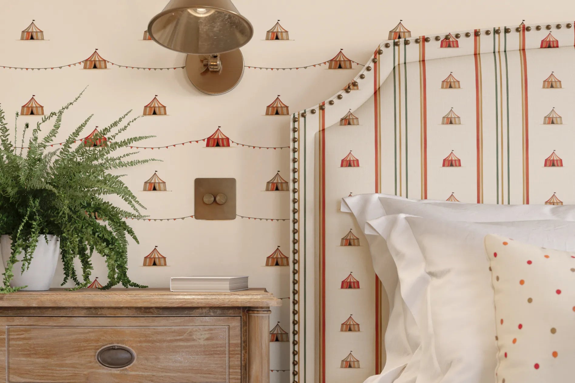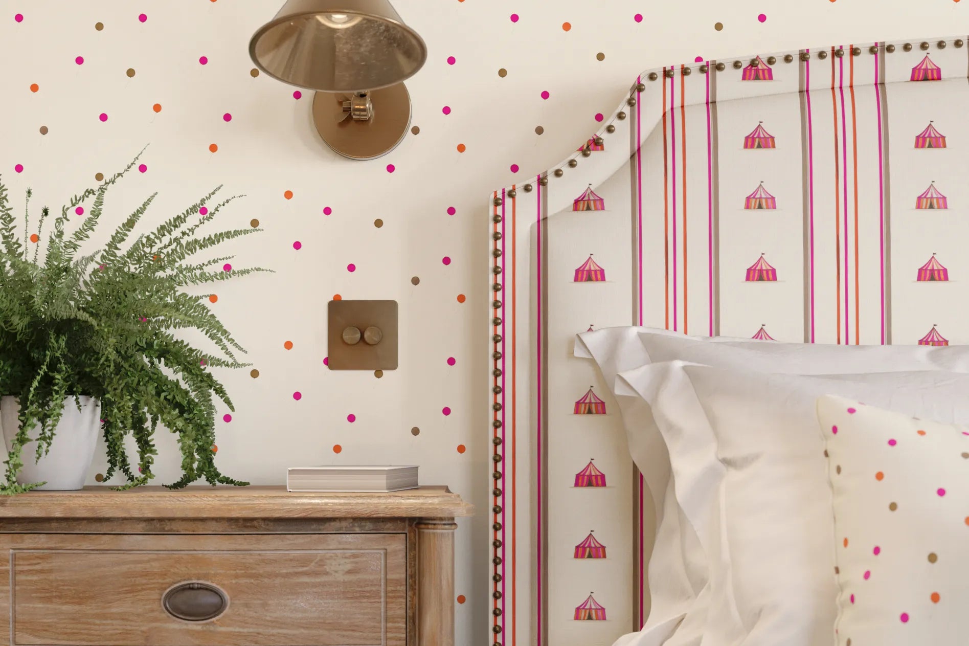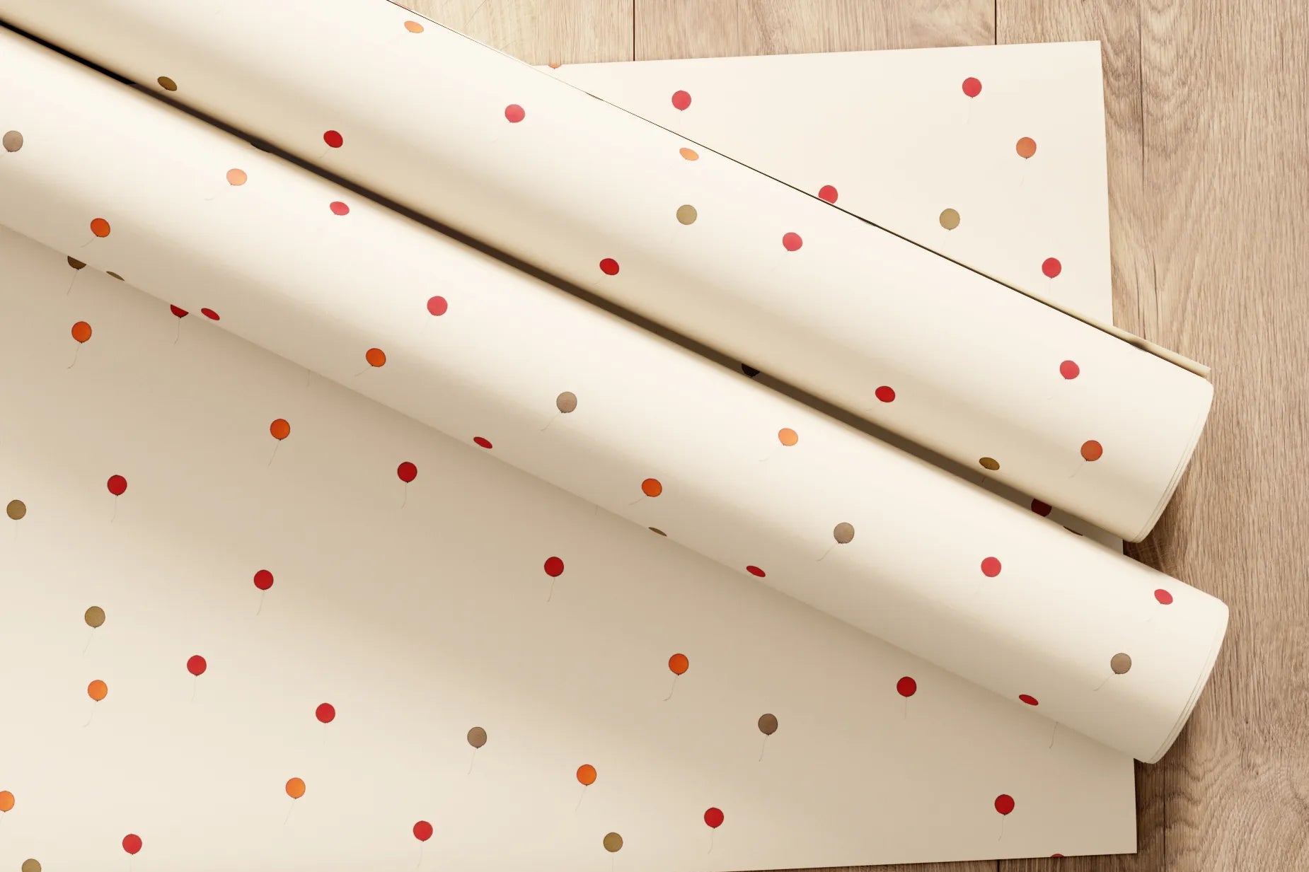 This charming paper features spiced-toned balloons which, at a distance, appear to be a simple polka dot, but up close, gentle hand-drawn strings reveal the floating nature of this design. This simple but charming paper will add whimsical character to your scheme on its own or act as the glue visually for a more heavily-patterned layered look from across the collection. Available as full rolls or half, our wallpapers are printed for you bespoke so you can be sure the colors and patterns will always be the perfect match. Use it to cover the whole space, pair with paneling, or use a half roll to add an unexpected surprise to a nook or bookcase back.