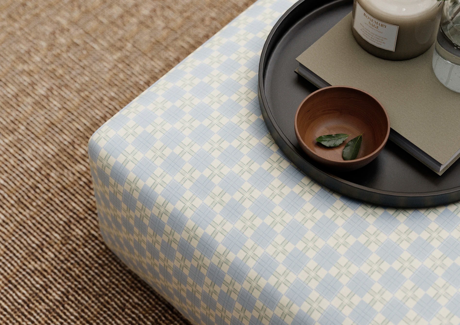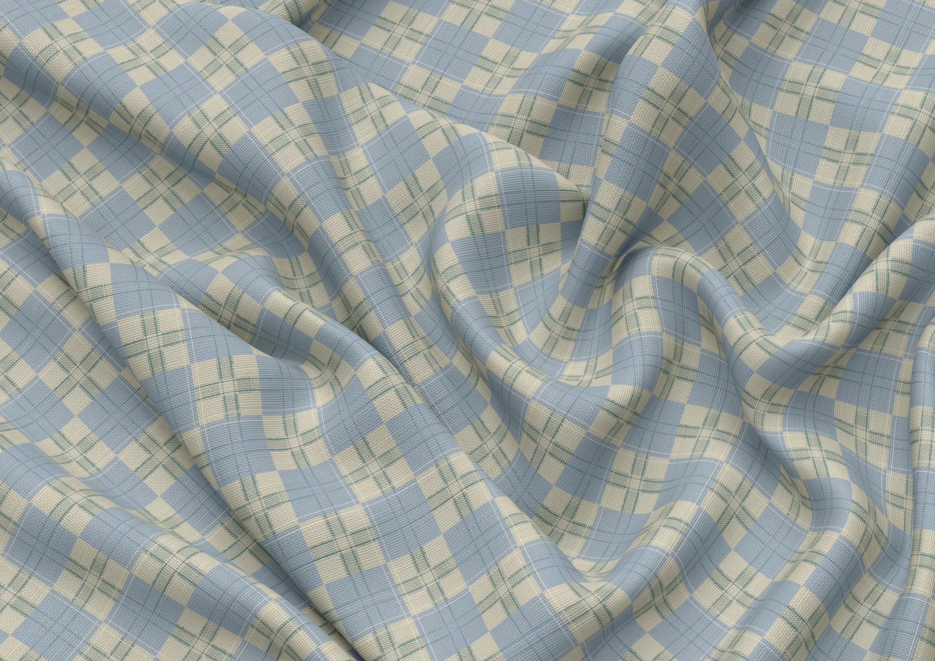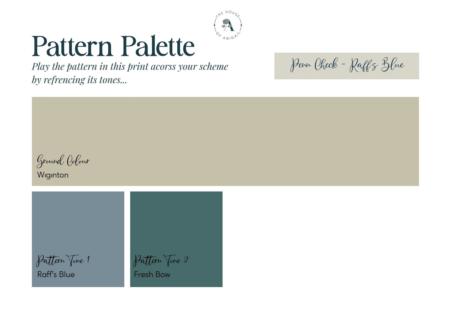 Penn Check is a warm, woven-inspired plaid that brings traditional structure and comfort to the Pensford Collection. In gentle mid tones of Raffs Blue, cream, and Wiginton, this check echoes the familiar rhythm of heritage textiles, reimagined here with a crisp, graphic precision. The pattern’s gentle contrast and balanced repeat make it ideal for grounding florals or standing alone as a timeless statement.