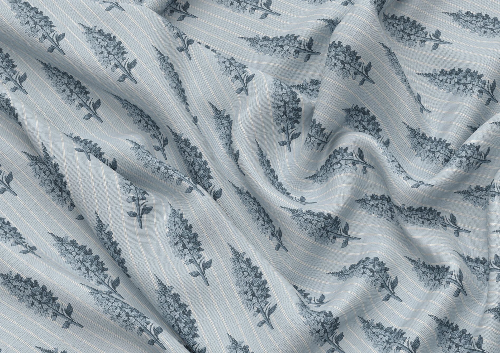 Penn Spear is a bold yet graceful floral stripe, inspired by the formal language of historic garden borders and botanical engravings. Each vertical column features a carefully hand-drawn spear-like bloom, detailed in warm sepia tones and framed by softly undulating pinstripes. Set against the soft, Peters ground, the pattern strikes a balance between strength and delicacy - structured, yet organic.