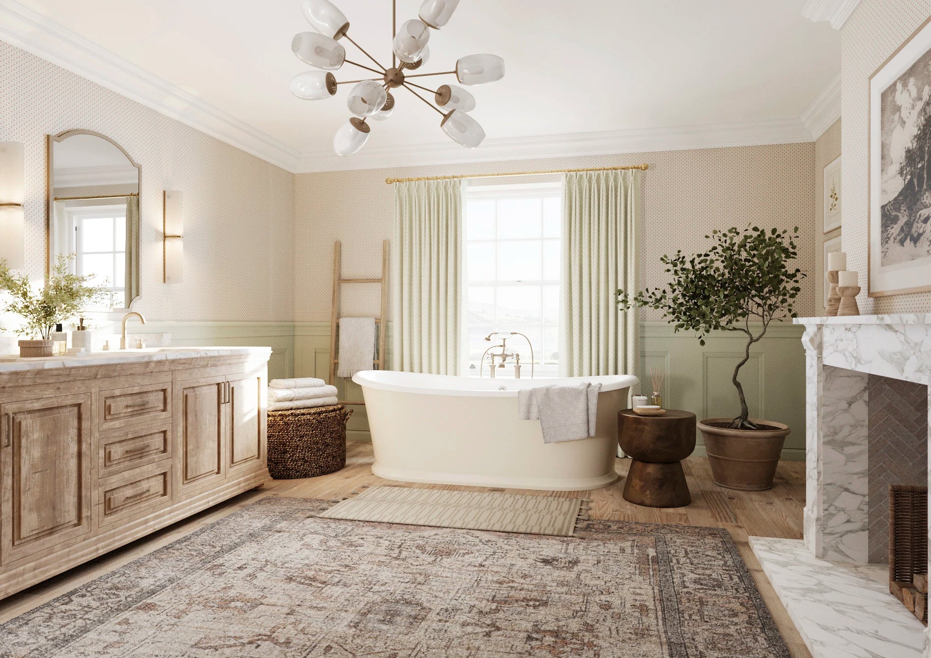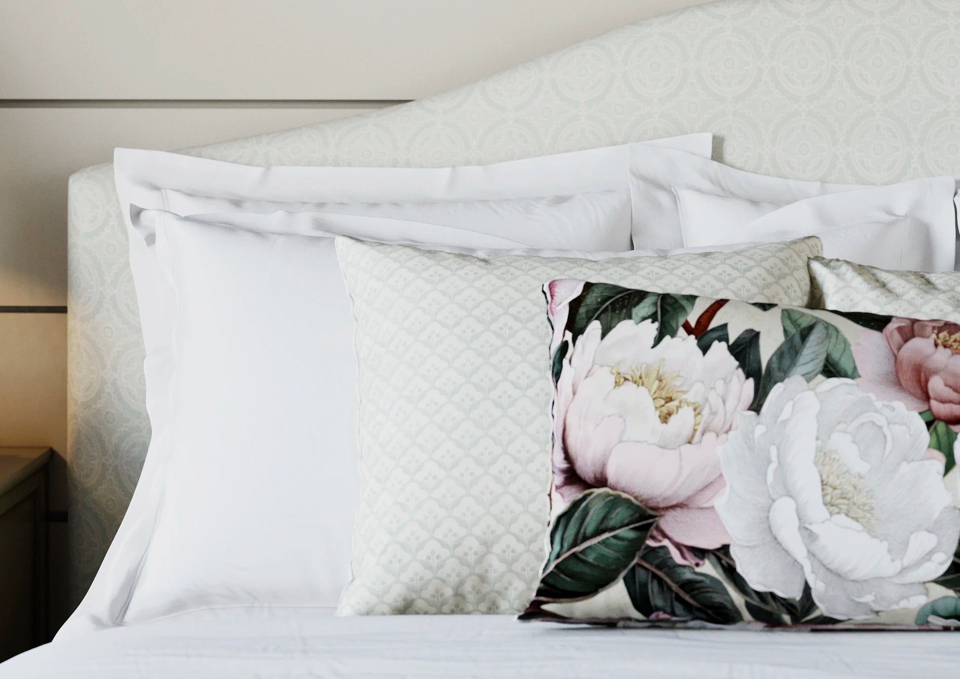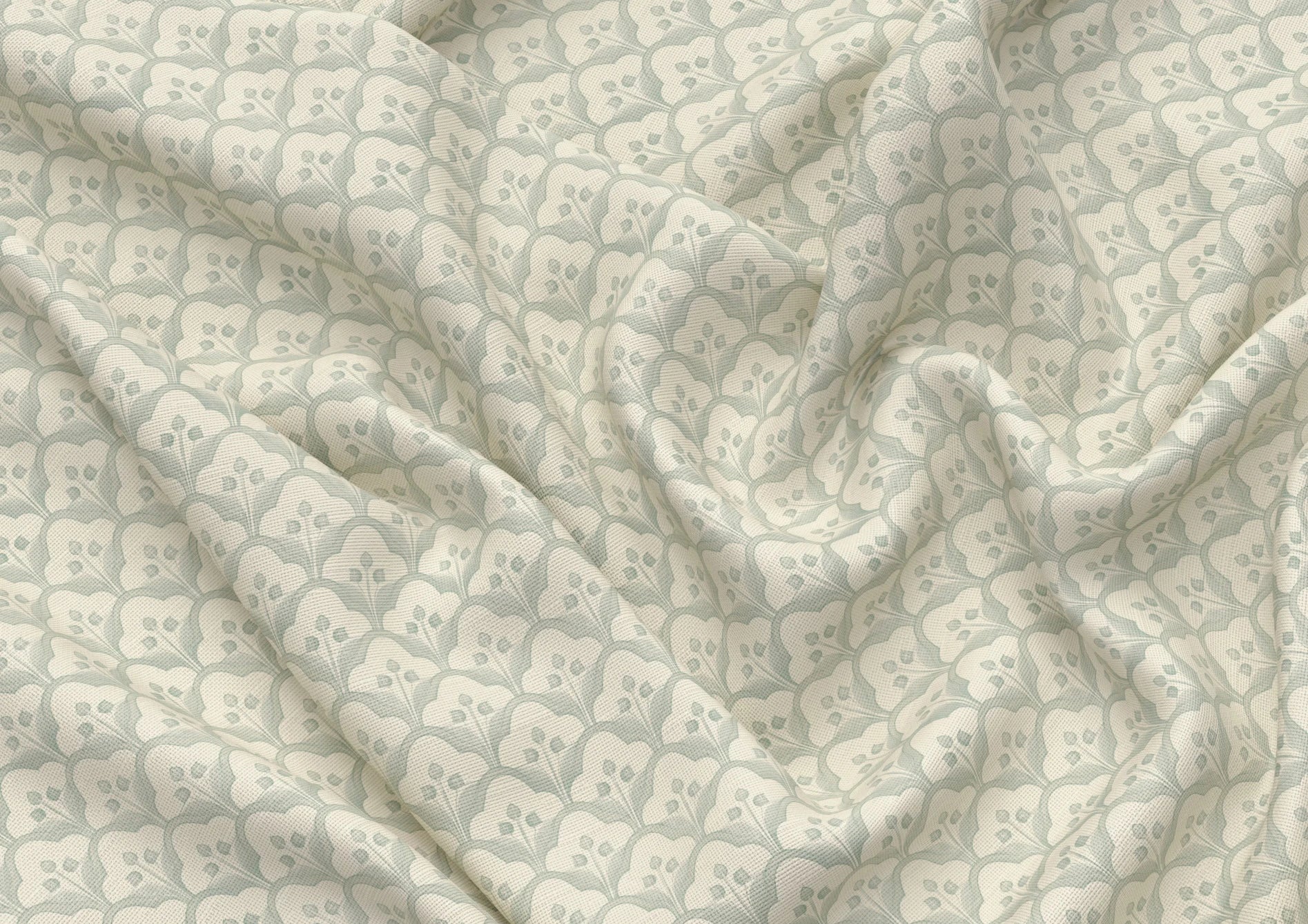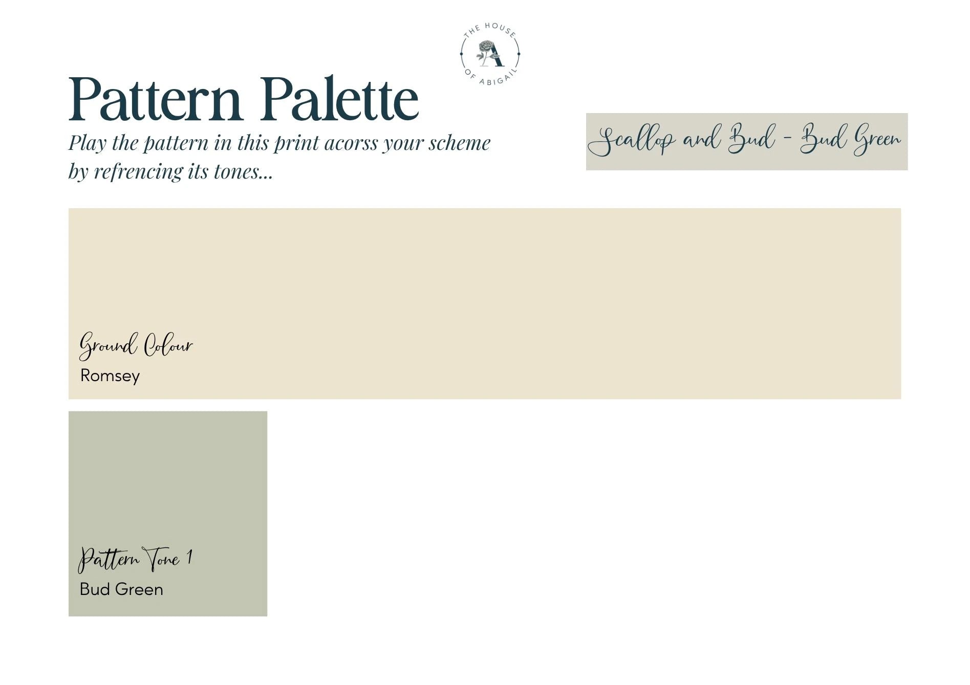 Scallop & Bud brings graceful geometry and stylised botanical form together in a quietly elegant repeat. Inspired by the flowing arches of wrought iron gates and early 20th-century garden trelliswork, each scalloped frame holds a cluster of gently drawn buds and leaves, creating a soft, structured rhythm. The Bud Green palette lends a natural subtlety to the design, enhancing its calming, grounded character.