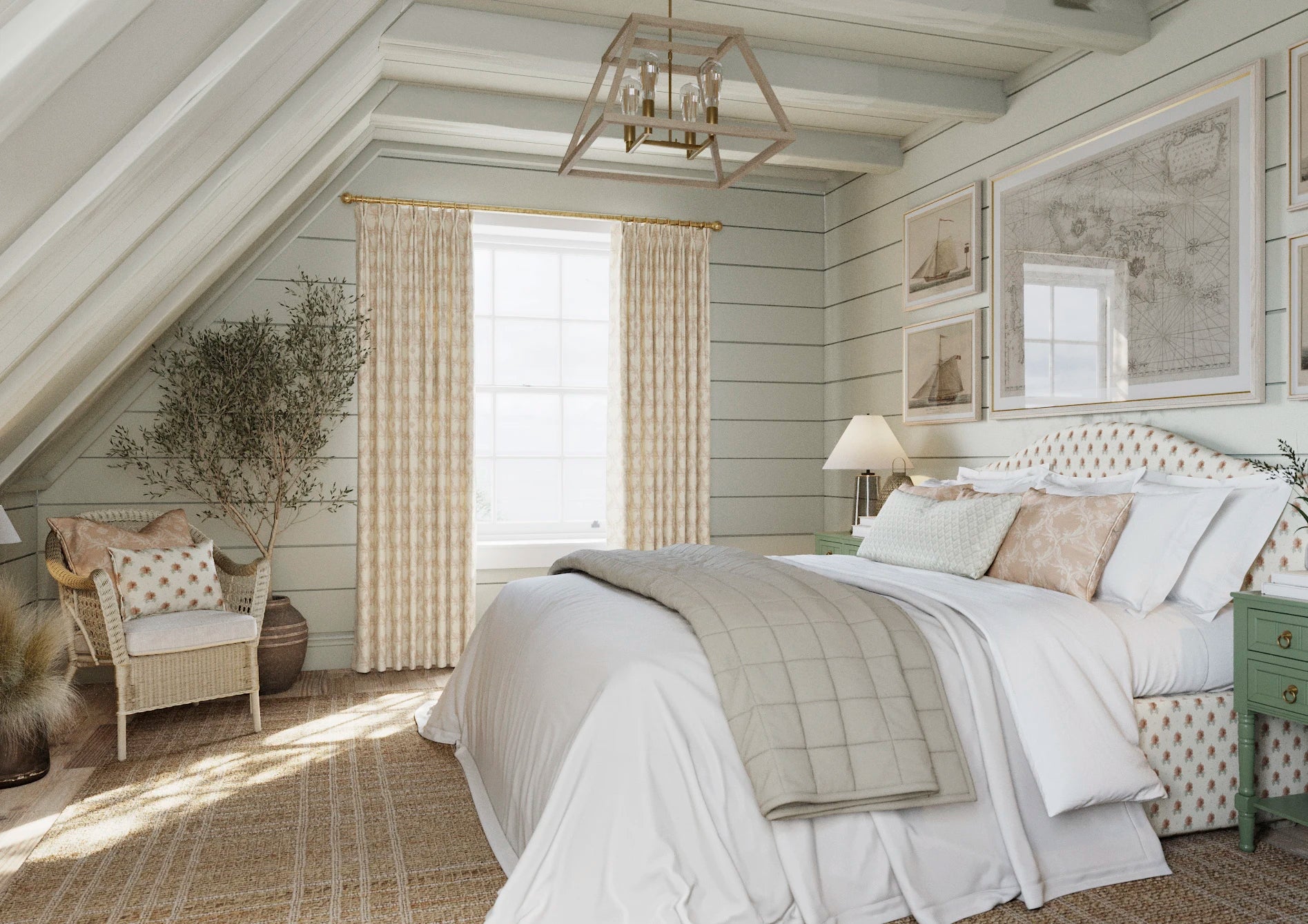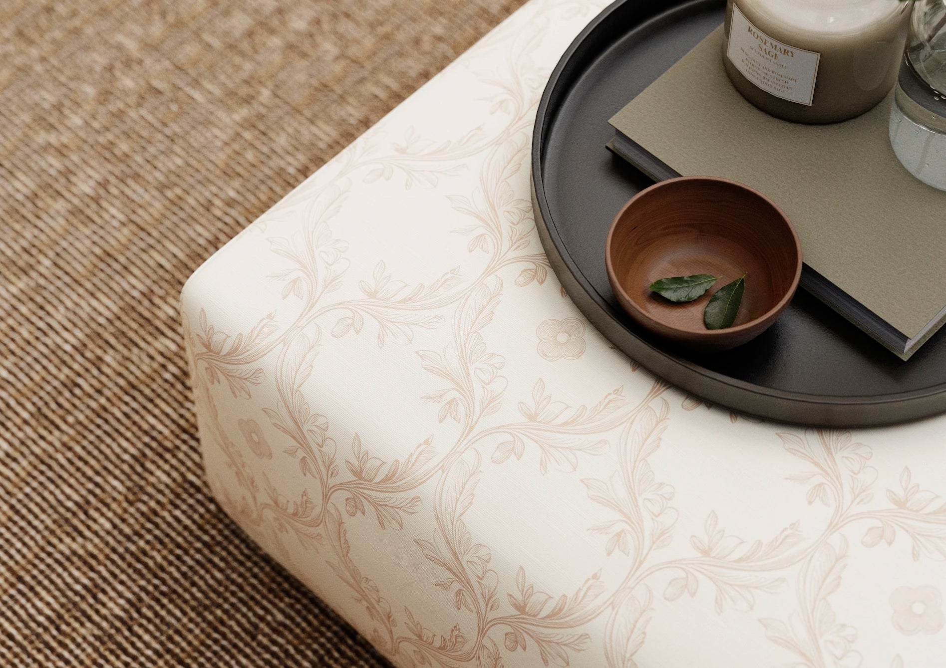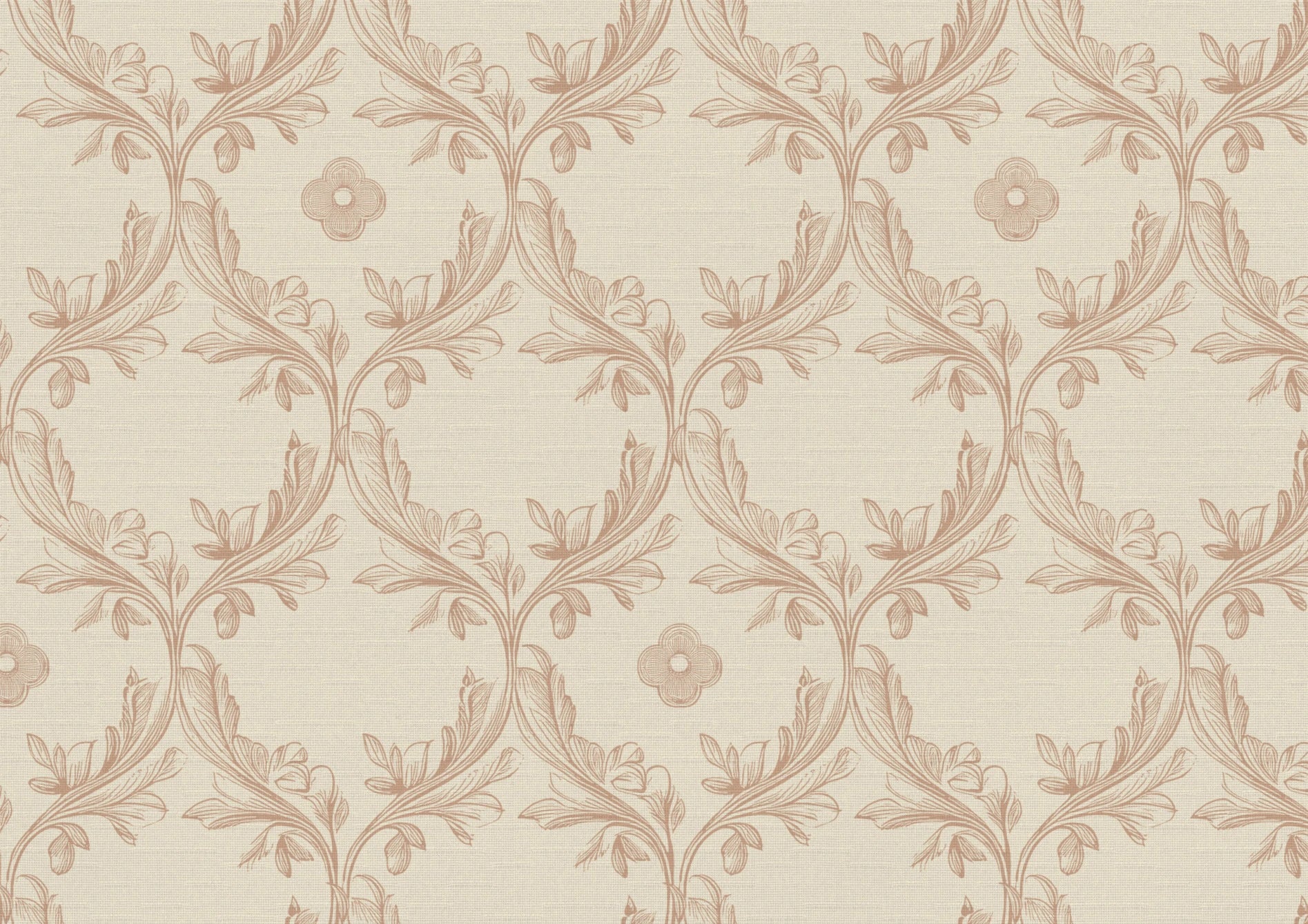 Vine & Bloom is a flowing, ornamental pattern inspired by ecclesiastical stone carvings and the natural forms found in wrought iron garden gates. Curving vine work weaves gently through the design, punctuated by stylised leaf clusters and delicate floral medallions. The Manson palette softens its classical form, creating a design that is both structured and serene.