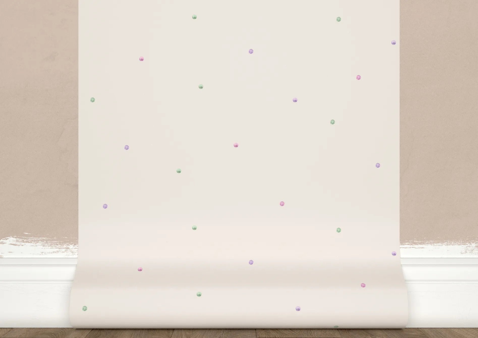 This all-over ditsy print offers a subtle and magical touch to any space. Join your new friends and fly away to a dreamland full of magic sprinkles and cake! The warm, spongey tones of the base colour work in harmony with the deep vintage mauve tones of the fairies' dresses. The Sponge colourway allows for your scheme to be both classic and calm or accented with one of the fabulous purple accents.